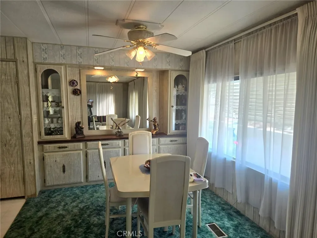 The property is located in the beautiful 55+ community of Golden Coach Manor in Hemet. It offers two bedrooms and two full baths, the master bath features a shower and sunken tub. The kitchen flows into the family room and living room and also includes a built in breakfast nook. The spacious living and dinning room features built-in China cabinets with a custom mirror and extra storage space. Both bedrooms have large closets with additional storage on the side, along with extra storage in the hallway. The property also includes an enclosed side porch/sunroom and two storage sheds, one of which can be used as a workshop. There’s no need to use the community laundry, as the home offers it’s own laundry room with washer and dryer included. Additional features include a newer HVAC system, two car covered parking with a patio. A security door and flood lighting. A small backyard allows for easy maintenance, and the low space rent of rent of $635.00 per month. The community also offers a heated pool and spa, a dog park, shuffleboard courts and a clubhouse with billiard and card room. This is the perfect home, offering both lifestyle and community all in one-make this your new home.