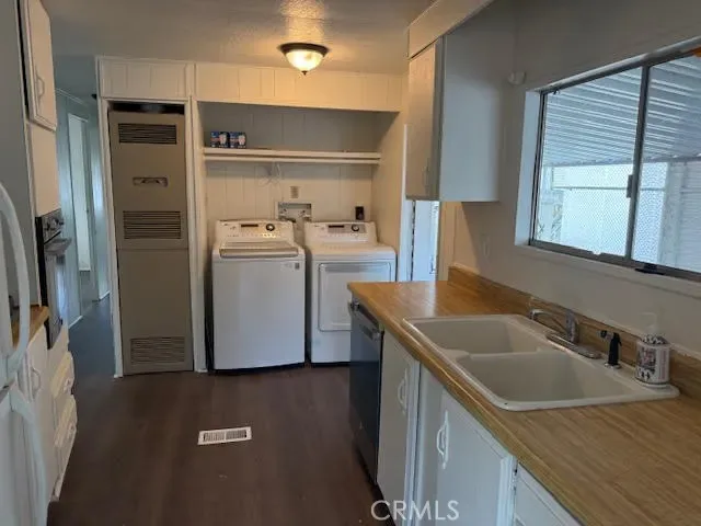 Great opportunity to live in this very peaceful, clean, and beautiful 55+ community and own your own home! This mobile has been updated with new interior paint, new laminate wood flooring, new kitchen appliances, like new washer and dryer matching set, and new toilets. This two bedroom two bath house boasts a walk-in closet in the primary bedroom, an indoor laundry room, and outdoor window shades to help keep the direct heat from the sun out of the rooms. You’ll appreciate the room outside for gardening, relaxing on the porch, eating al fresco, and enjoying the outdoors. This extra long carport will give you space to park and work on your projects under a covered space along with room for storing your tools and gardening items in the shed. Here you can have the privacy you want along with living in a community that supports togetherness with a large heated pool, spa, library, game room, banquet room, and gathering areas for you to enjoy your friends and neighbors. Start fresh and make this house your home!