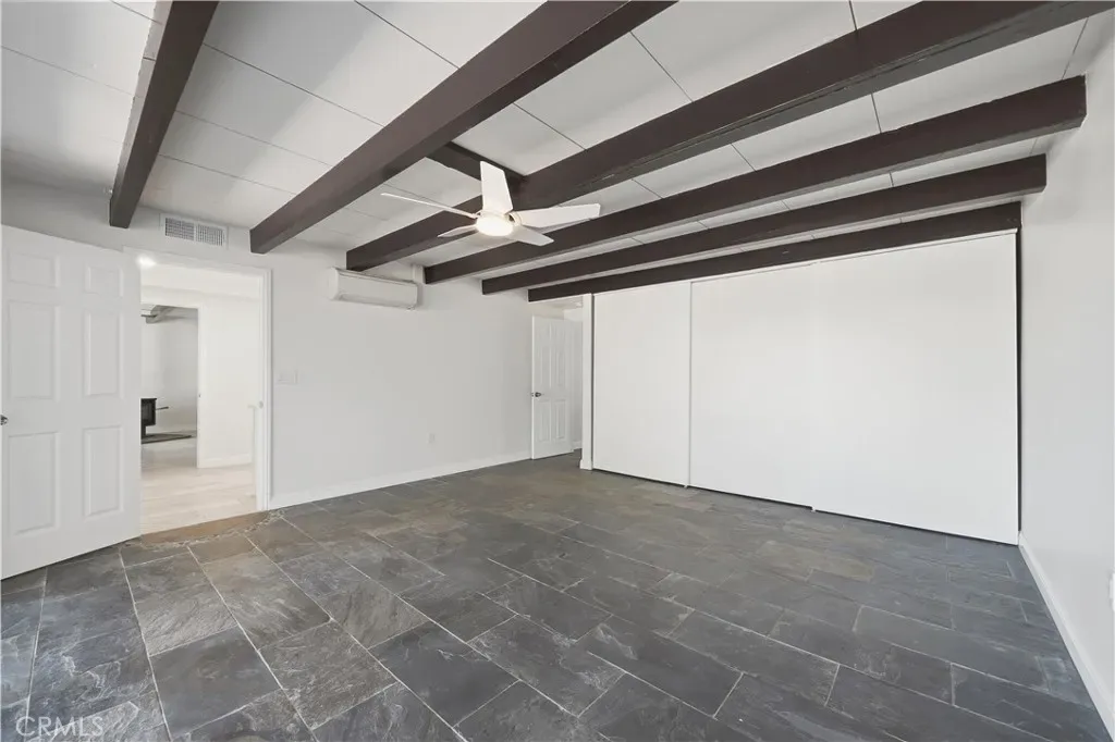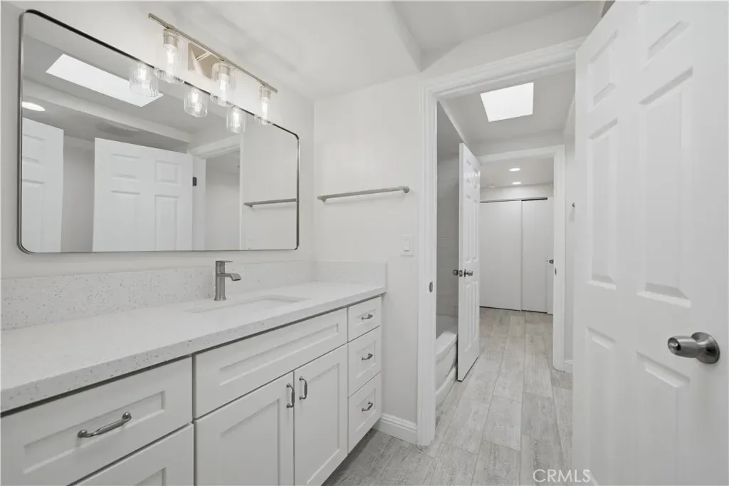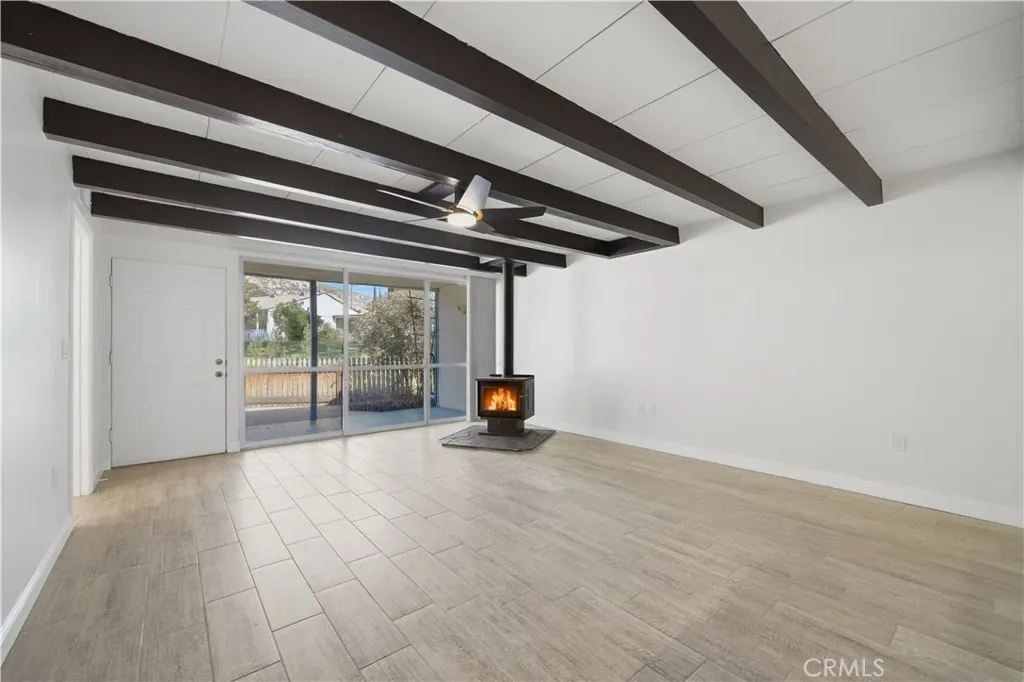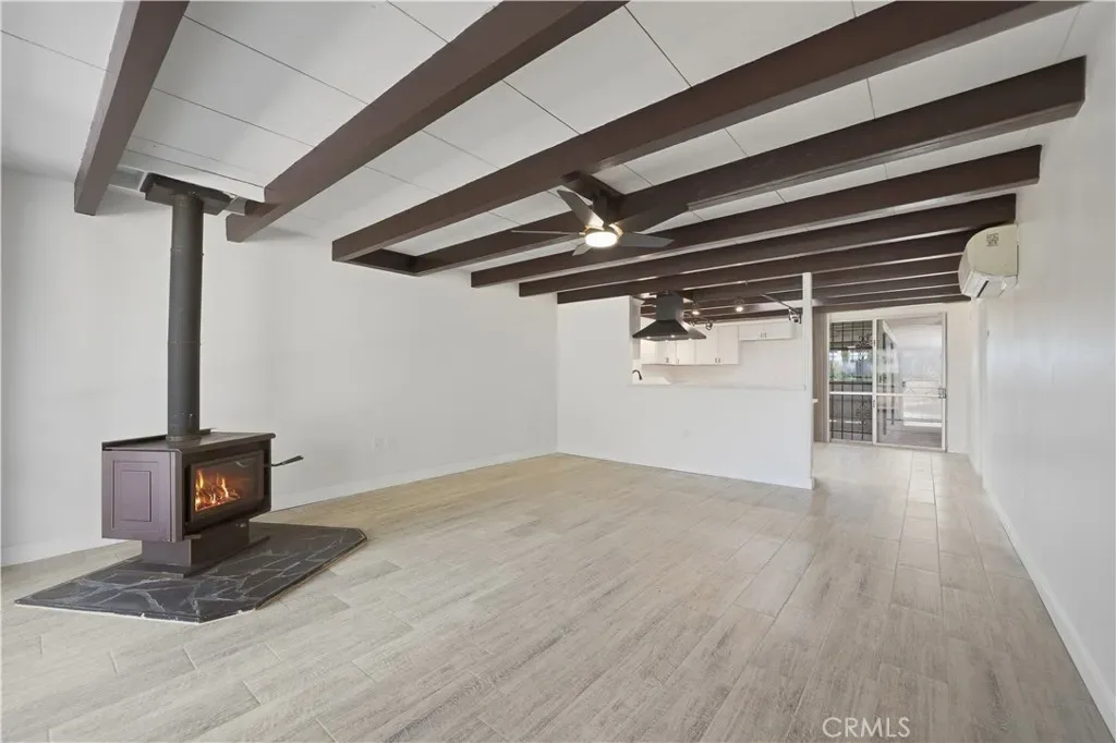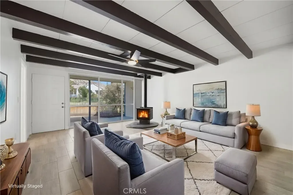 Lovely, fully remodeled single-story 2 bedroom, 1.5 bath, 1,280 sq ft home nestled in South Hemet’s desirable and peaceful Evergreen community—truly one of the area’s best-kept secrets. Ideally positioned just minutes from a regional swimming park, sports park, the Western Science Museum, and the scenic Domenigoni Lake reservoir offering boating, fishing, and a walking trail around the water, this location blends tranquility with convenient access to recreation, shopping, schools, and everyday services. Set within a quiet, secluded enclave bordered by a lush greenbelt, the home invites you to relax on the front porch and yard area while enjoying the gentle breeze through the trees and the calming sounds of nature. The community pool provides the perfect setting for summer fun and cooling off. Inside, the home has been completely remodeled with thoughtful upgrades throughout, including a brand new roof, updated electrical panel, fresh interior paint, all new plank tile flooring, and beautifully redesigned kitchen and bathrooms featuring new cabinetry, countertops, fixtures, and mirrors. The expansive living room showcases floor-to-ceiling windows, a charming wood-burning stove, and a striking wood-beamed ceiling, all flowing seamlessly into the kitchen and dining area for comfortable everyday living and entertaining. The kitchen is enhanced by abundant natural light from a skylight, complemented by track lighting and stylish finishes that elevate the space. Two spacious bedrooms, each with their own private half bath, share a centrally located shower and tub, offering both privacy and functionality. Energy-efficient comfort is provided by three separate mini-split systems for customized heating and cooling. An indoor laundry room adds convenience, while the cozy private back patio offers a perfect space for relaxing outdoors or accommodating pets. Additional highlights include a one-car garage with a security-gated pedestrian entrance, a prime end-of-community location next to extra parking, and only one shared wall—enhancing both privacy and livability. This is a rare opportunity to own a beautifully upgraded home in a serene setting with exceptional nearby amenities—an inviting place to call home.