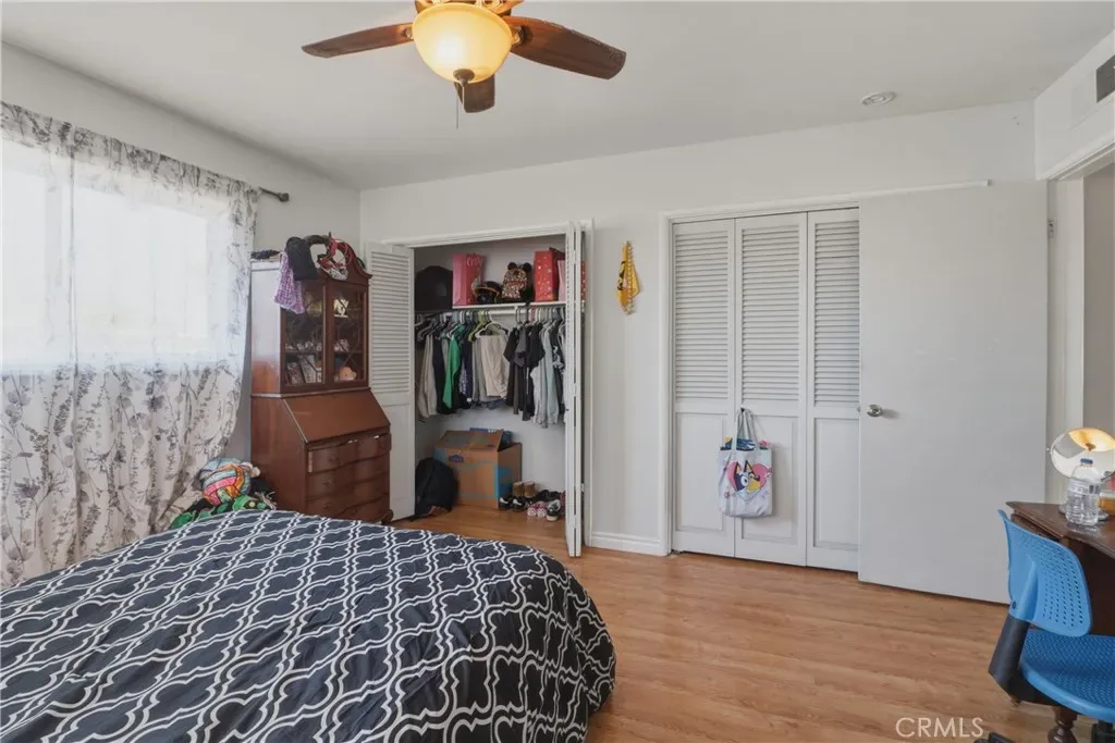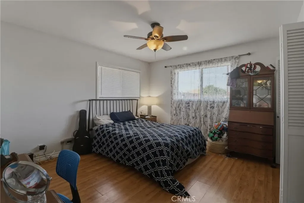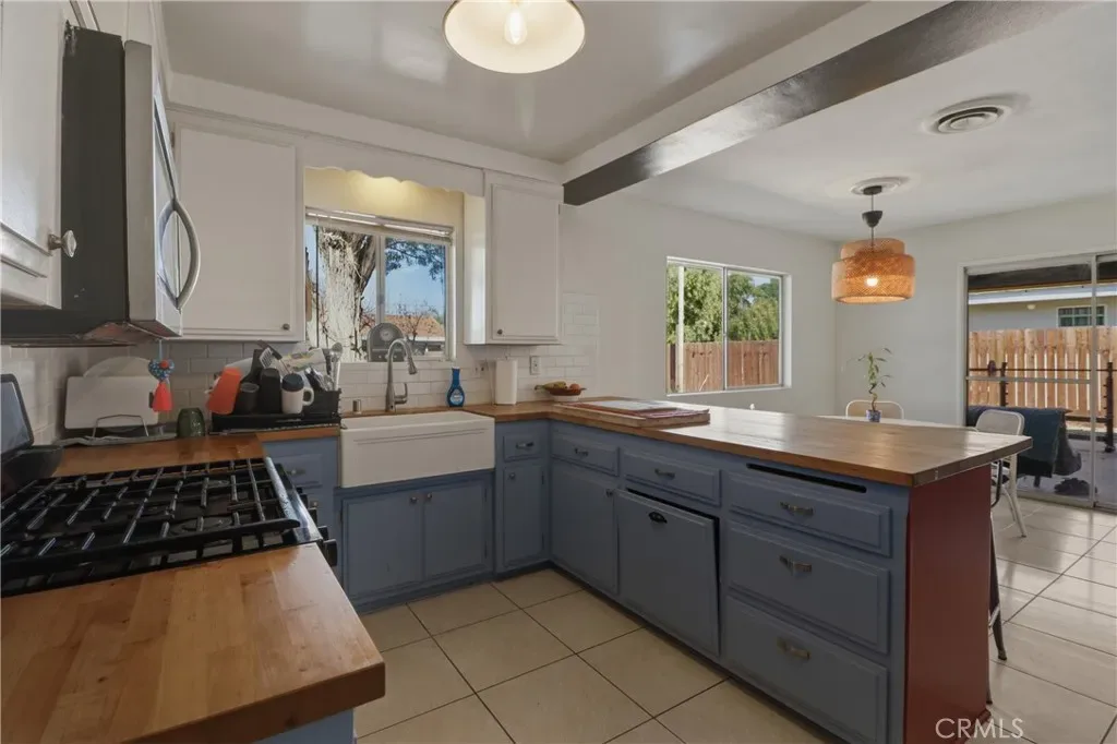 Ready to see!! Welcome home! Ideal for first-time buyers, this move-in-ready starter home features paid-off solar panels, a large backyard and ADU potential. The home offers a bright living room with tile flooring and recessed lighting, two well-sized bedrooms, and two bathrooms. The primary suite includes dual closets and an updated en-suite bath with tiled tub surround and quartz vanity. The open kitchen and dining area feature butcher block countertops, stainless steel appliances, tiled backsplash, bar seating, and an updated pendant light. A great opportunity to own and invest in your future!