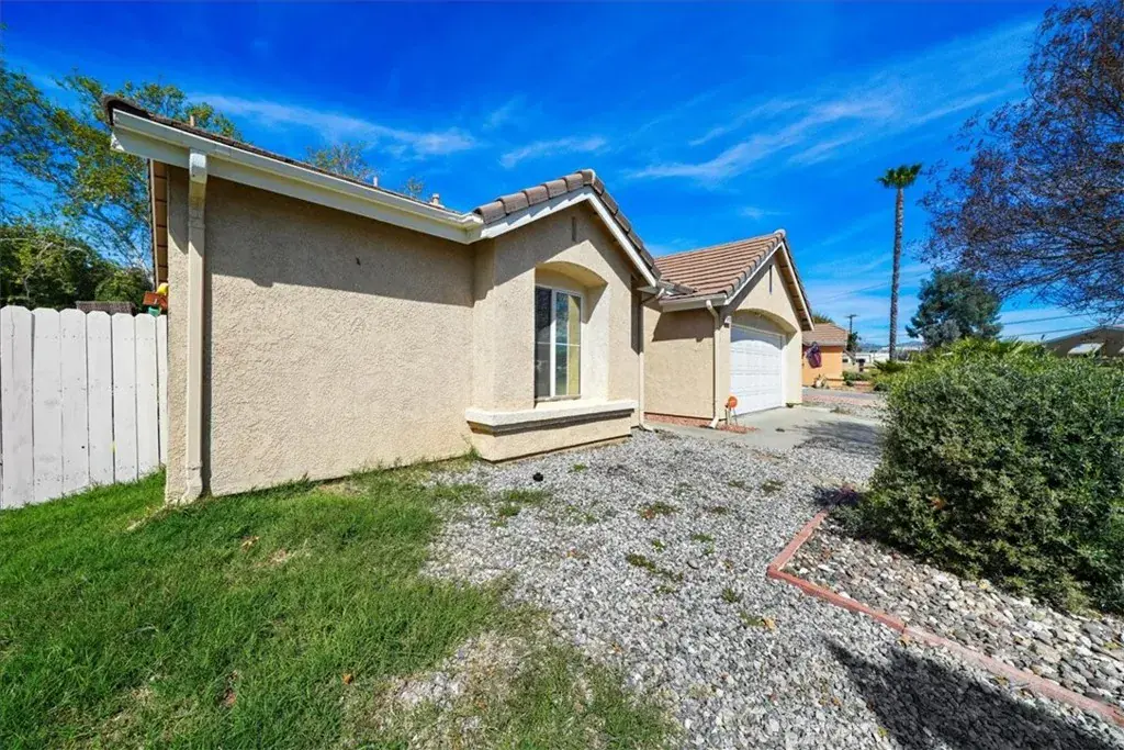 Welcome to 717 Balsam Way, a beautifully maintained single-story home nestled in the gated Laurel Park community in Hemet—an all-ages neighborhood offering resort-style amenities and convenient access to shopping, recreation, and entertainment. This thoughtfully designed home features 2 bedrooms and 2 bathrooms with 1,217 square feet of living space, including a spacious primary suite and a private junior suite, making it ideal for guests, extended family, or a home office. The home sits on a 4,792 square foot lot with attractive curb appeal highlighted by a wide driveway, mature shade tree, and easy-care landscaping. Inside, the open floor plan creates a bright and welcoming atmosphere. The entry opens to a light-filled family room with soaring ceilings and a tile fireplace with wood mantle. The living space flows seamlessly into the dining area with sliding glass doors leading to the backyard. The eat-in kitchen offers ample cabinetry, tile countertops, and a water filtration system under the sink. The spacious primary suite features vaulted ceilings, an upgraded ceiling fan, and a walk-in closet. The ensuite bathroom includes dual sinks, a soaking tub, and a separate walk-in shower. Down the hall is a generously sized junior suite with its own walk-in closet. Additional interior highlights include designer two-tone paint, Berber carpet flooring, custom window treatments, and an indoor laundry room with built-in cabinetry. Step outside to a spacious backyard with mature fruit trees, offering a wonderful opportunity to design your own outdoor retreat. Laurel Park residents enjoy gated security and community amenities including a pool, spa, clubhouse, and onsite RV parking available for approximately $25 per month. The location provides convenient access to shopping, dining, and entertainment including Soboba Casino Resort just minutes away. Outdoor enthusiasts will appreciate nearby Diamond Valley Lake Recreation Area. The home is also about 45 minutes to Palm Springs and approximately one hour to Desert Hills Premium Outlets.