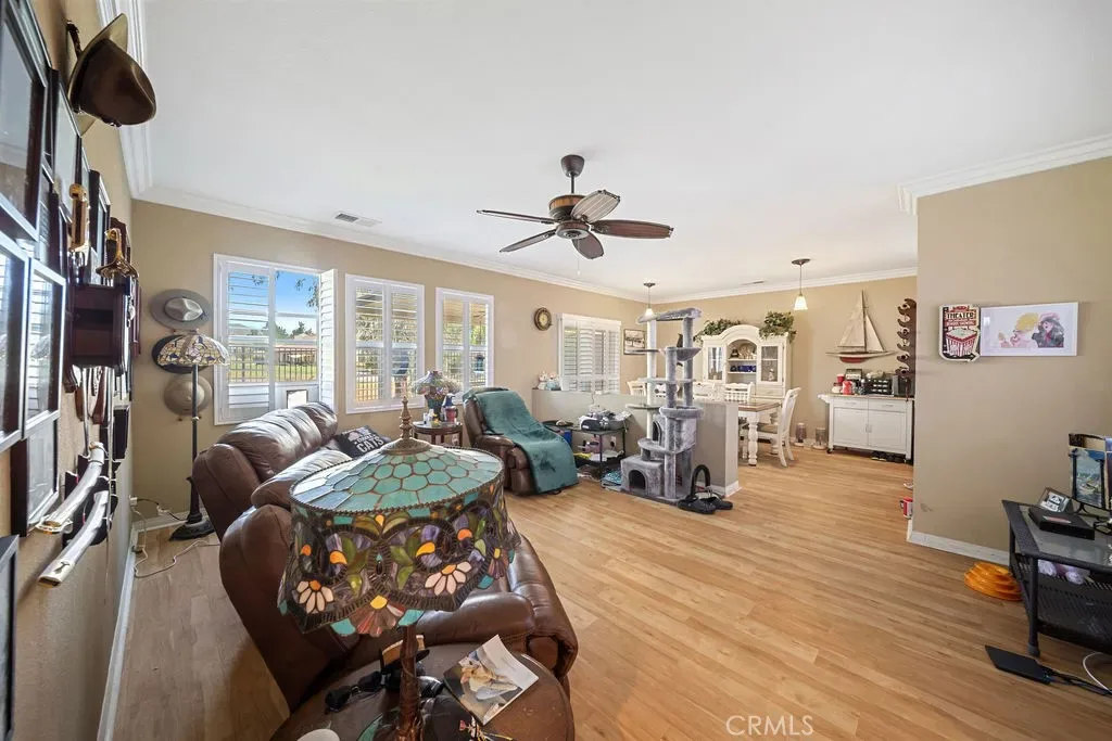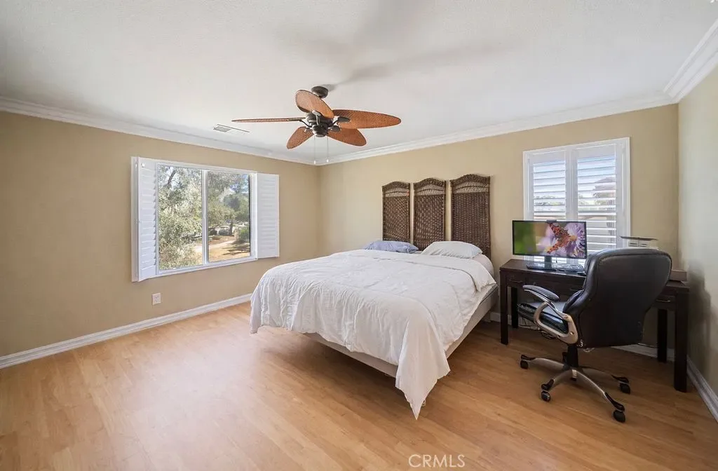 Featuring 5 spacious bedrooms and 3 full bathrooms, the home provides exceptional room to live, relax, and entertain. From the moment you step inside, you’ll appreciate the expansive feel created by 9-foot ceilings, abundant natural light, plantation shutters, and refined crown molding throughout.