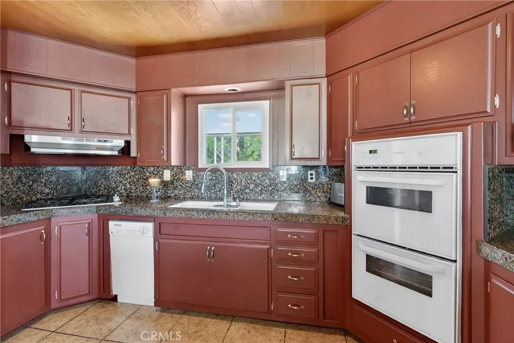 This home has a huge covered patio. Plus Bonus room!! Living room is grand with large windows for tons of natural light. Home has updated laminate flooring through out the living room, dining area and bedrooms. Kitchen has tile flooring, durable granite countertops and wrap around cabinets, double oven and a dishwasher. Dining area has a charming built in hutch and large dual pane window to enjoy the view of the patio and Beautiful landscaped yard. Laundry room also has side door access to the covered carport that can accommodate 3 cars.