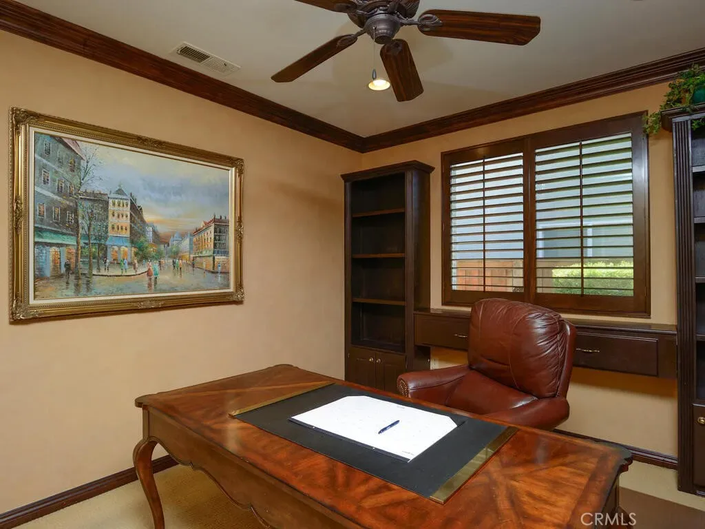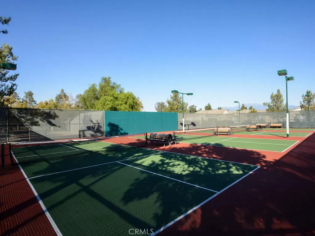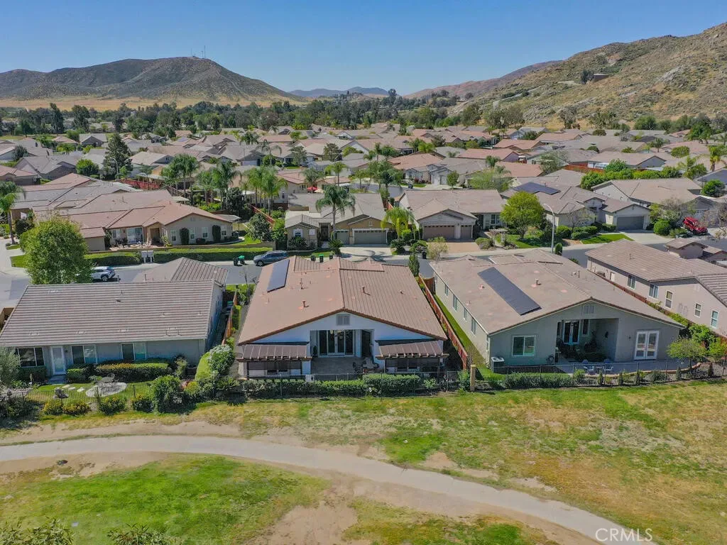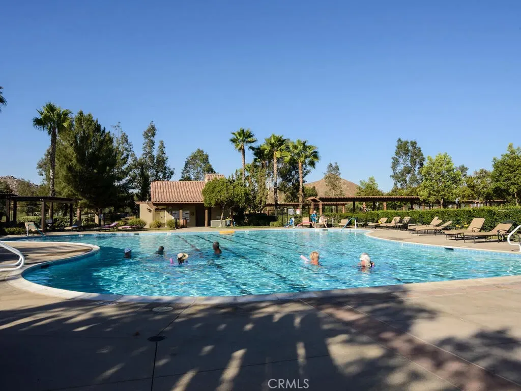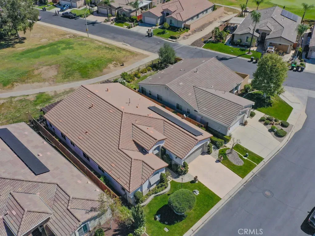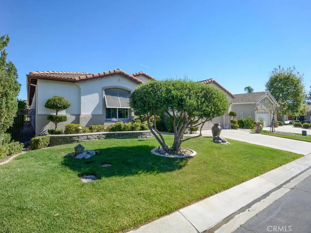 Championship Plan 3, the largest plan in the community, which has 3 bedrooms, and 3 bathrooms, plus an office, in 2755 square feet. The home is located in the highly sought after Four Seasons of Hemet, with view of the 13th tee box right outside the rear patio. This home has been highly upgraded in so many ways, but to list just a few designer touches, all the woodwork has been replaced with rich dark wood, the doors are all arched to add to the theme of an Italian Tuscan villa, all cabinets, and many built ins are designer grade. The tile flooring has several designs from the foyer through the living room to the huge French doors out to the back patio. Notice the coffered ceilings The primary bedroom closets are oversized and have thoughtfully designed closet organizers installed, and there is a jetted spa tub to relax away all your worries. In addition to all this, there is PAID OFF SOLAR. Be sure to tour The Lodge, and experience the amenities, which include The Bistro, onsite restaurant with sit down service, billiards, movie theater, library, craft room and game rooms. The huge ballroom is always busy getting ready for the next program being held there…Banquets, bingo, live productions, dancing and much more. Outside the Lodge, we find the open patio area, offering concerts and summer programs, the pool with exercise classes or lap swimming, the gym building with hair salon. Behind the gym building, you find the shuffleboard, bocce ball, tennis and pickleball.