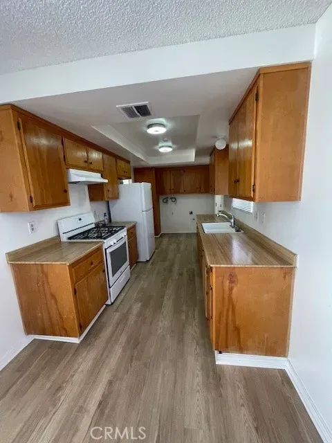 Oh my! All of this! New-New-New! New flooring, new paint, new stove, new fridge! This super clean home is the back unit of a duplex. The two homes are separated by private garages. This home has two bedrooms and a bonus room that could be a guest, play, craft room or office. The house has two bathrooms and inside laundry hookups. Private back patio in a quiet setting. Don’t wait! No pets please!