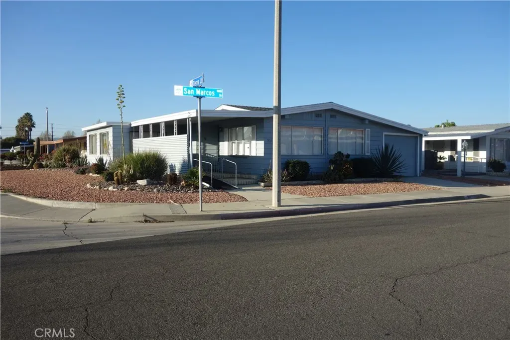 Welcome Home! This Corner lot 2 bedroom 2 bath home features a formal living and dining room. Open kitchen with a breakfast bar and open to the family room. The family room features a built in hutch desk area. Just off the family room you will find the fully enclosed bonus room area perfect for hobbies, exercise room or extra storage. The guest bedroom is a good size with an adjoining bathroom that features a walk in shower. The primary bedroom features built in dresser, mirrored closet and has the adjoining primary bathroom featuring dual sinks, sunken tub and a walk in shower. The laundry room is located indoors with cabinets and a functional sink. The washer and dryer are included. Step out the side door into the enclosed garage. Possible parking for 2 cars and 2 sheds are at the end. Outside you will find nicely landscaped with rock and just the right amount of shrubbery. The back hosts some beautiful cactus. The front porch features a built in ramp. All located in Sierra Dawn Estates a 55+ Community that features 4 clubhouses , 5 pools, Jacuzzis, exercise room, shuffle board horseshoe, and so many other clubs and activities to join in on the fun. Basic cable is included with the monthly HOA Fee and there is parking for your RV. This home is directly across the street from one of the main clubhouses. Oh and did I mention…YOU own the land – No Space Rent! Put this one on your list to see today