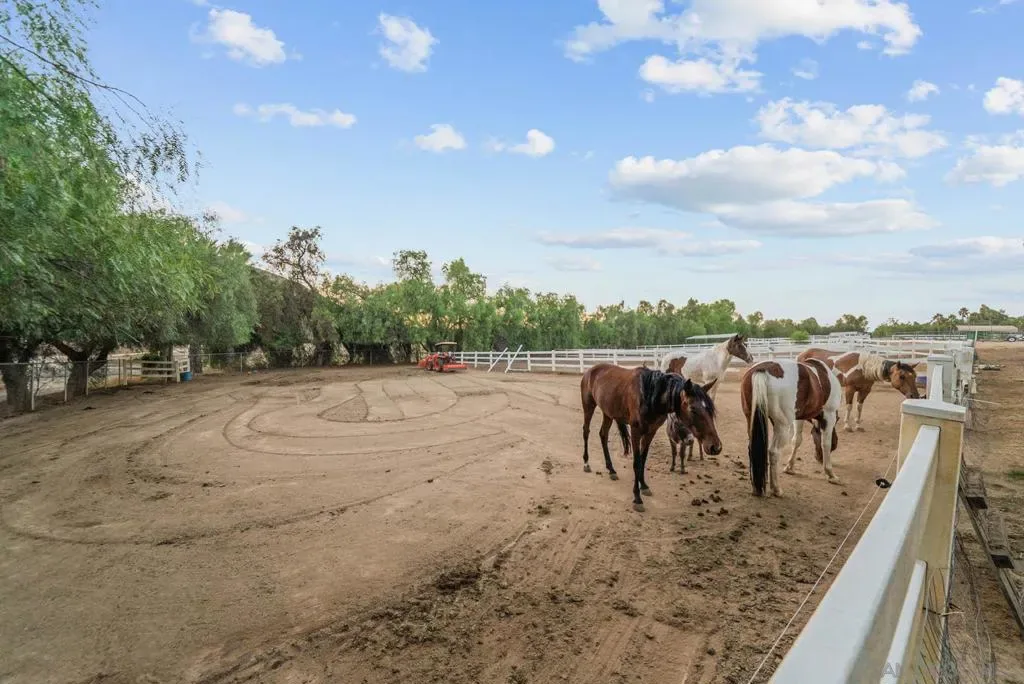 Discover an extraordinary retreat perched high above Diamond Valley Lake—this 10.26-acre estate combines upscale finishes with ranch functionality. Approaching through a gated entrance secured by keypad access, you’ll find the grounds fully fenced for privacy and peace of mind. Inside, the single-level home spans approximately 3,287sq ft and features custom touches throughout including separate AC and heating in primary, granite countertops, marble baths, custom cabinetry, and a thoughtful floor plan with seamless indoor-outdoor flow. Outside, the property presents a resort-caliber experience—propane-heated pool and spa, outdoor kitchen, with built in fireplace and lush mature landscaping create an oasis ready for relaxation and entertaining. For equestrian or agricultural enthusiasts, the property doesn’t disappoint: a fully equipped arena, “mare motel” stall facilities, cross-fenced acreage, and additional space for barns or paddocks, RV hookups also on lower level. With sweeping views in every direction, full utility infrastructure (well, septic, solar, 220V systems), and a setting that’s private yet close to Hemet and Temecula amenities, this home is the rare blend of luxury, security, and acreage. Home was custom built with Minnesota standards.