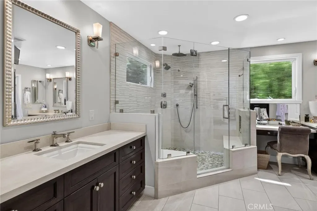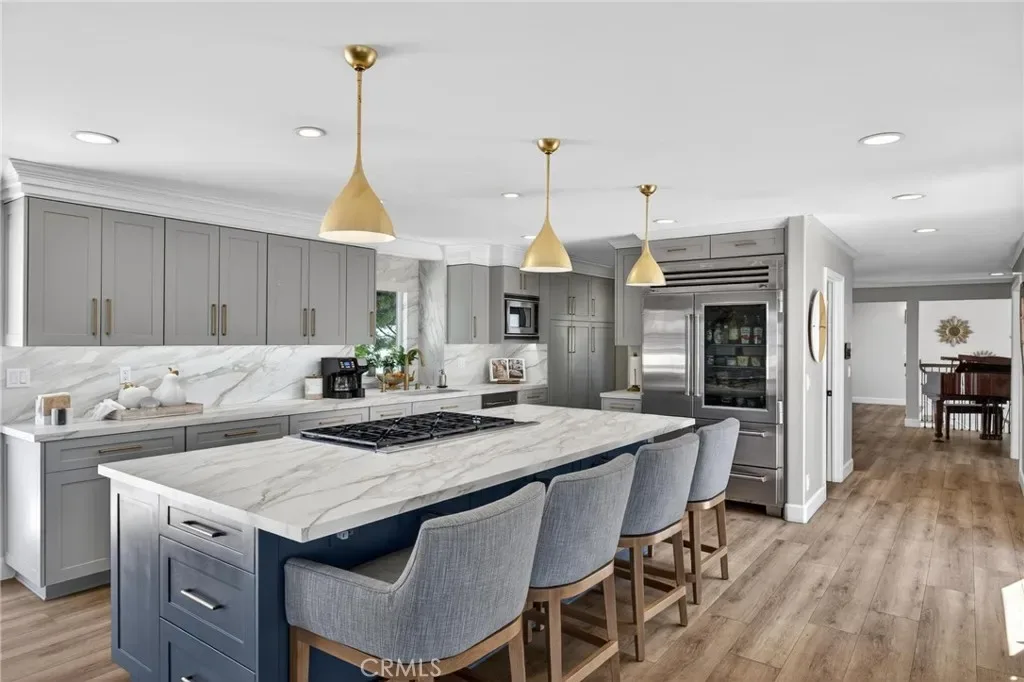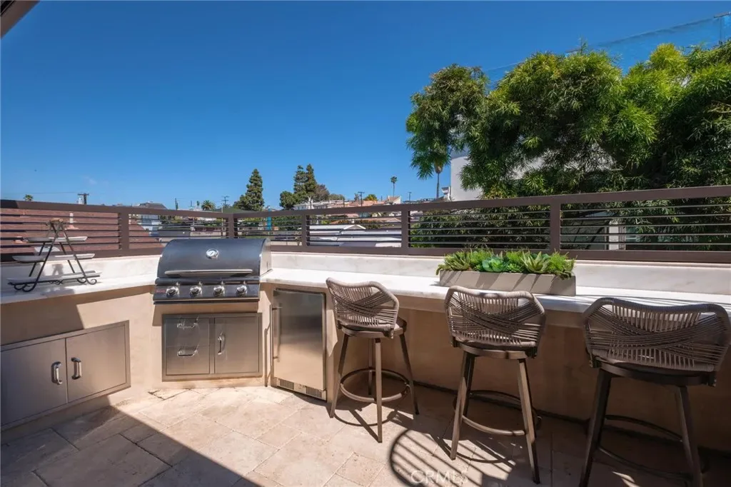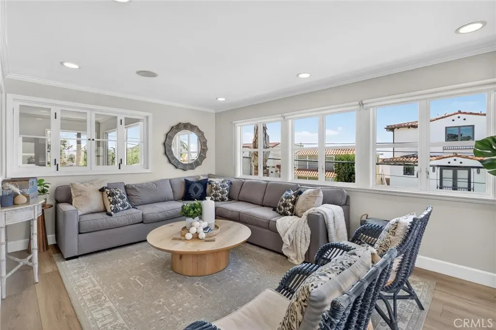 The perfect blend of a beach lifestyle and modern sophistication – this is a unique and rare gem in Hermosa Beach. Perched on an oversized corner lot in the heart of Hermosa Beach, this private coastal villa captures timeless Spanish-inspired architecture through refined design with a curated, modern interior palette. Thoughtful architectural details and warm finishes create an atmosphere that feels both elevated and welcoming. Lush greenery and framed by swaying palm trees, this coastal villa offers the rare combination of resort-inspired living, serenity, thoughtful functionality, privacy, sophistication and timeless appeal. Step through the arched entryway and custom wrought-iron door into a naturally sunlit foyer with soaring ceilings and elegant detailing. The floor plan invites effortless living with multiple indoor-outdoor spaces that capture ocean breezes and golden South Bay natural light. The entry level south wing offers a secluded sanctuary offering a warm stone fireplace, private outdoor veranda and grassy yard, hotel spa inspired bathroom with separate sink counters, primping station, oversized shower and walk-in closet. The north wing has three additional bedrooms, an en suite with outdoor access to spa and patio. The additional two bedrooms are well appointed with ample closet space and share a dual sink bathroom. This wing enjoys a full kitchen offering convenience and privacy for family members and guests, two car garage, laundry room, tool work area and storage. Retreat upstairs to the heart of the home in the warm family room with walls of windows and views that stretch beyond rooftops and spectacular sunsets, built-ins, a dual-sided fireplace that also accommodates the outdoor TV deck. Bask in the sunroom with a wall of western windows plus interior windows inviting ocean breezes and sunlight. Enjoy the open piano area and formal dining room. Relish cooking and entertaining in your gourmet kitchen that includes a 48” SubZero Pro refrigerator, 48” six burner gas cooktop, colossal island that opens seamlessly to a dining area, perfect for gatherings. Outdoor barbeque and bar or up the stairs to ocean views from the rooftop sky deck. Upstairs is a chic yet functional private and spacious office featuring custom cabinetry and bookshelves. Additional highlights – hardwood-like floors, designer lighting, security system and AC. Multiple flexible living areas and decks provide intimate spaces to unwind or host festivities for all lifestyles.