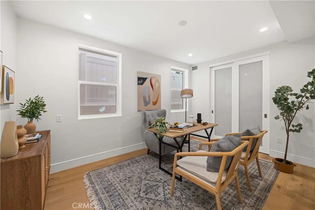Above, the primary suite unfolds as a private retreat, thoughtfully composed to evoke rest and restoration. Its adjoining bath space draws on the language of spa design, offering a sensory experience defined by calm textures and restrained elegance. Additional rooms maintain this ethos of adaptability and cohesion, shifting effortlessly between purposes while preserving a unified design language.