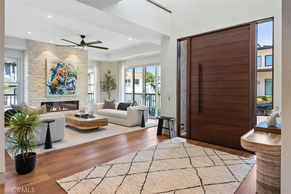 Welcome to this extraordinary custom estate perched in the Hermosa Hills and set on a large, flat corner lot – an exceptional rarity in Hermosa Beach, where modern design and coastal luxury meet. With 7 bedrooms, 7.5 baths, and over 7,800 square feet of impeccable living space, this home offers the best of coastal living: elevated design, breathtaking views and effortless sophistication. The architectural craftsmanship is unmistakable—an oversized pivot wood front door, wraparound front deck and an open-concept layout that seamlessly blends indoor and outdoor living. A dramatic glass-encased elevator serves as a sculptural centerpiece, connecting each level with ease. The main living area features a stone fireplace, wood-detailed ceilings and folding glass walls that open to an entertainer’s dream: a covered outdoor pavilion with kitchen pass-through, bar seating, pool and spa, fire pit and built-in lounge seating—all enhanced by custom lighting for an inviting nighttime ambiance. The gourmet kitchen is both functional and beautiful, showcasing a waterfall island of natural stone, designer backsplash, custom cabinetry and a cozy built-in breakfast nook. A formal dining area and multiple living spaces offer room for gatherings large and small. Upstairs, the primary suite is a serene retreat with a private terrace, marble-clad bath, soaking tub, and adjacent office with its own ocean-view patio. The lower level is pure leisure—complete with a full bar, movie theater, game room, and home gym. Every detail has been curated for luxury living: custom railings, designer fixtures, home automation, sound and theater systems throughout, security cameras, a full water filtration system and a four-car garage with built-in storage.