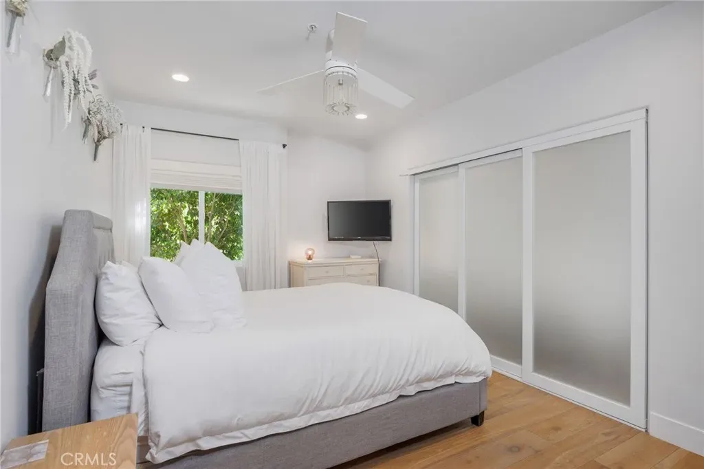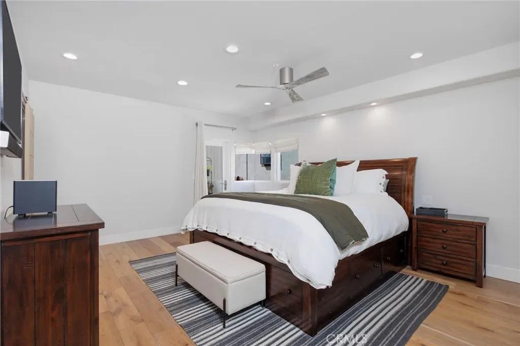 Downstairs, the primary suite opens to a private patio and includes a walk-in closet and a well appointed spa-like bath with dual vanities, soaking tub, and walk-in shower. Two additional bedrooms and a sleek updated bathroom complete the level.