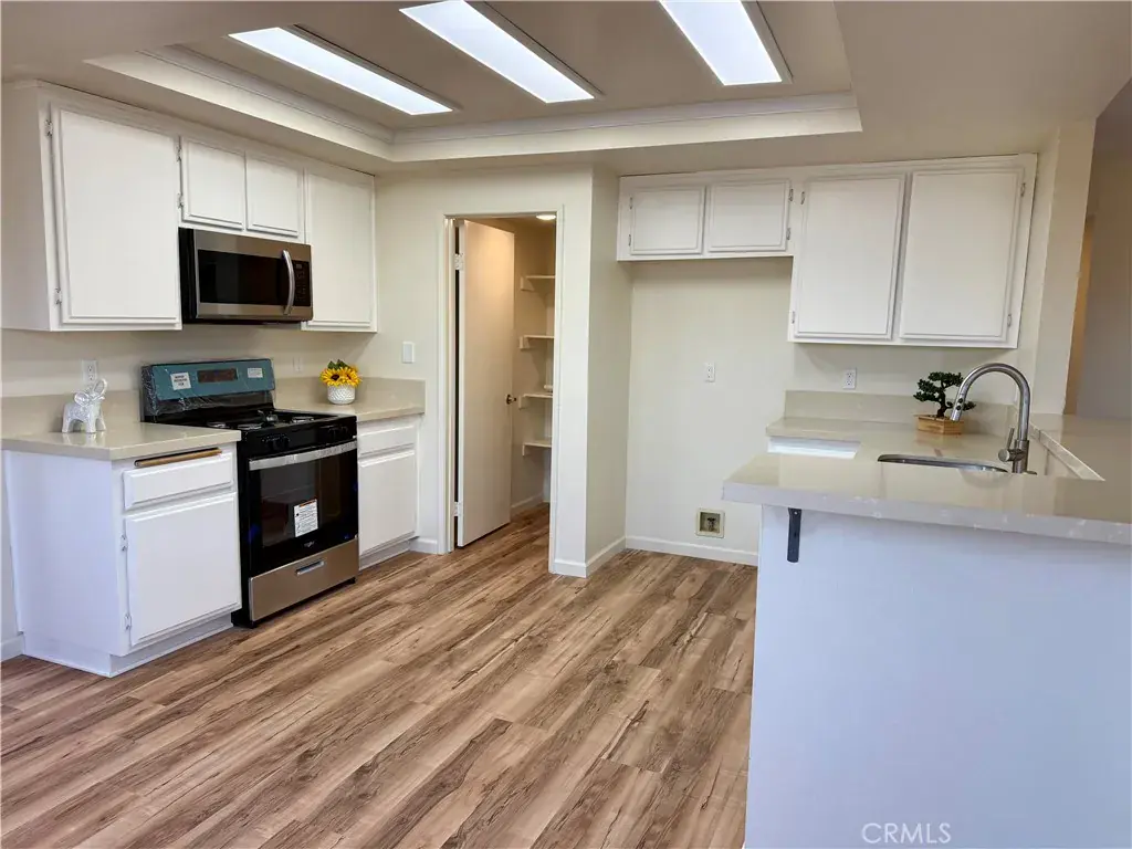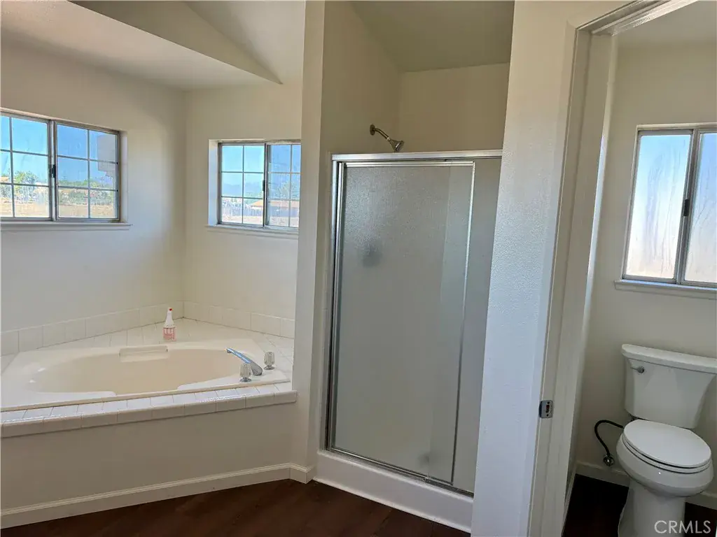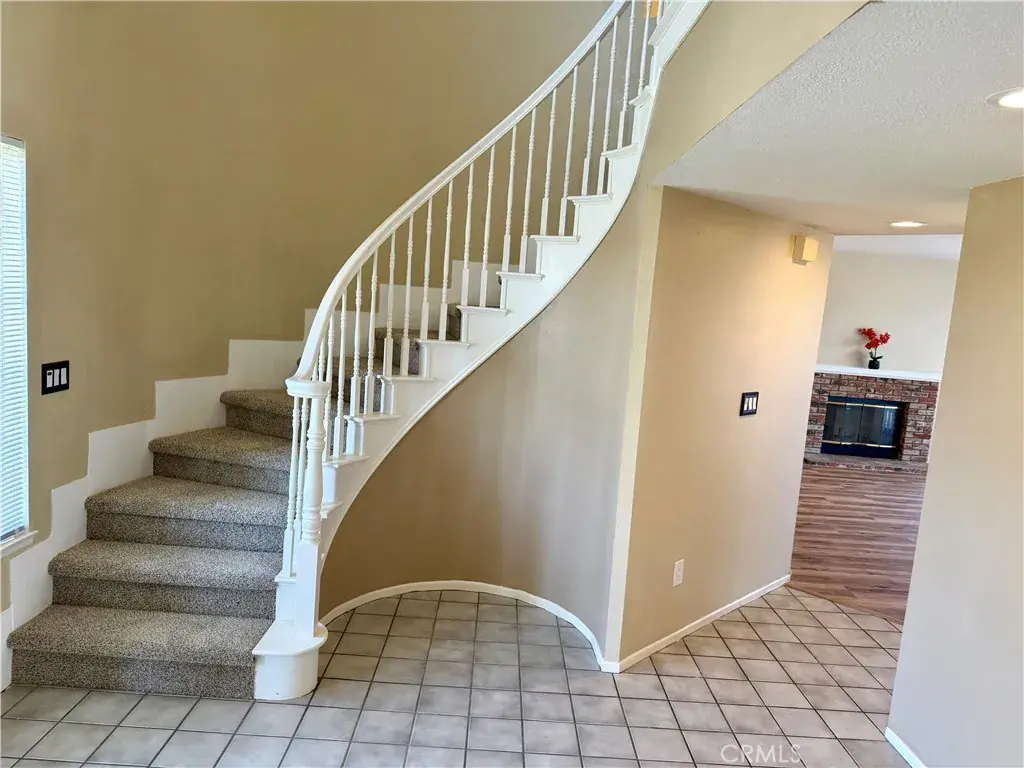 Hesperia 2401 sq ft 4 bedroom 2.5 baths inside new paint, spacious living room and dining room combo, kitchen includes new lighting stainless-steel appliances stove dishwasher microwave pantry, Family room with a fireplace and a cabinet bar sink, big master bedroom and master bathroom has nice tub and separate shower double sinks and a separate toilet room area, all bedrooms have new fans new laminated floors blinds closet doors, one bedroom has a fireplace and walking closet, stairway new carpet, new light fixtures, 3 car garage