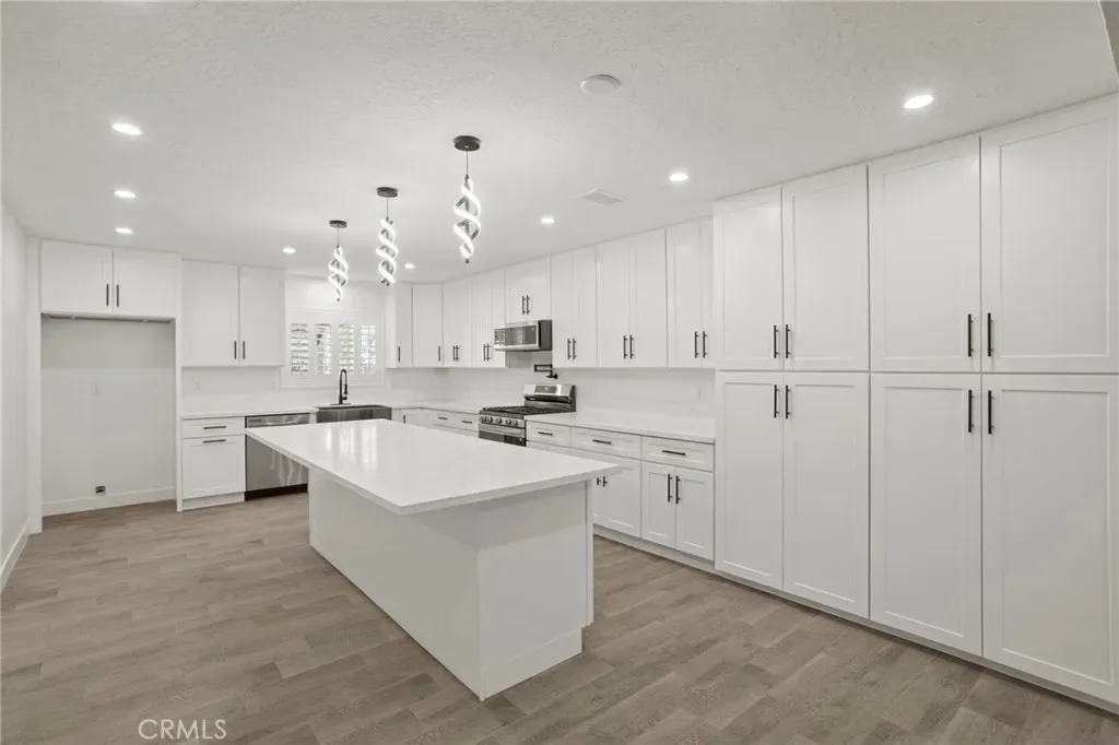Beautifully remodeled 3 bedroom, 2 bathroom home offering 1,582 sq ft of living space on a spacious 1.1 acre lot in Hesperia. This move-in ready home has been completely updated with new flooring, fresh paint, recessed lighting, plantation shutters, and modern finishes throughout. The stunning kitchen features quartz countertops, stainless steel appliances, ample cabinetry, and a large island perfect for entertaining. The home includes a primary suite with its own private bathroom, plus two additional spacious bedrooms. Major upgrades include new plumbing, new electrical, new water heater, new roof, and a new garage door. Enjoy the covered patio overlooking the large backyard with endless possibilities. With 1.1 acres, there is plenty of room for RV parking, toys, animals, or future additions. The property also includes an attached 2-car garage and plenty of outdoor space for entertaining and relaxation. Great location close to Main st, shops