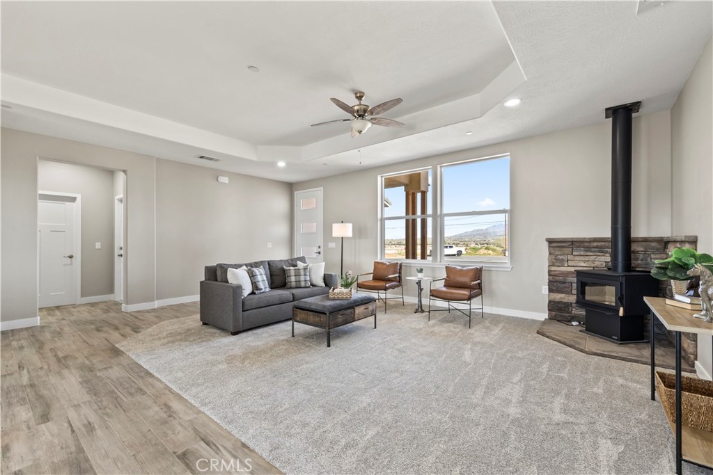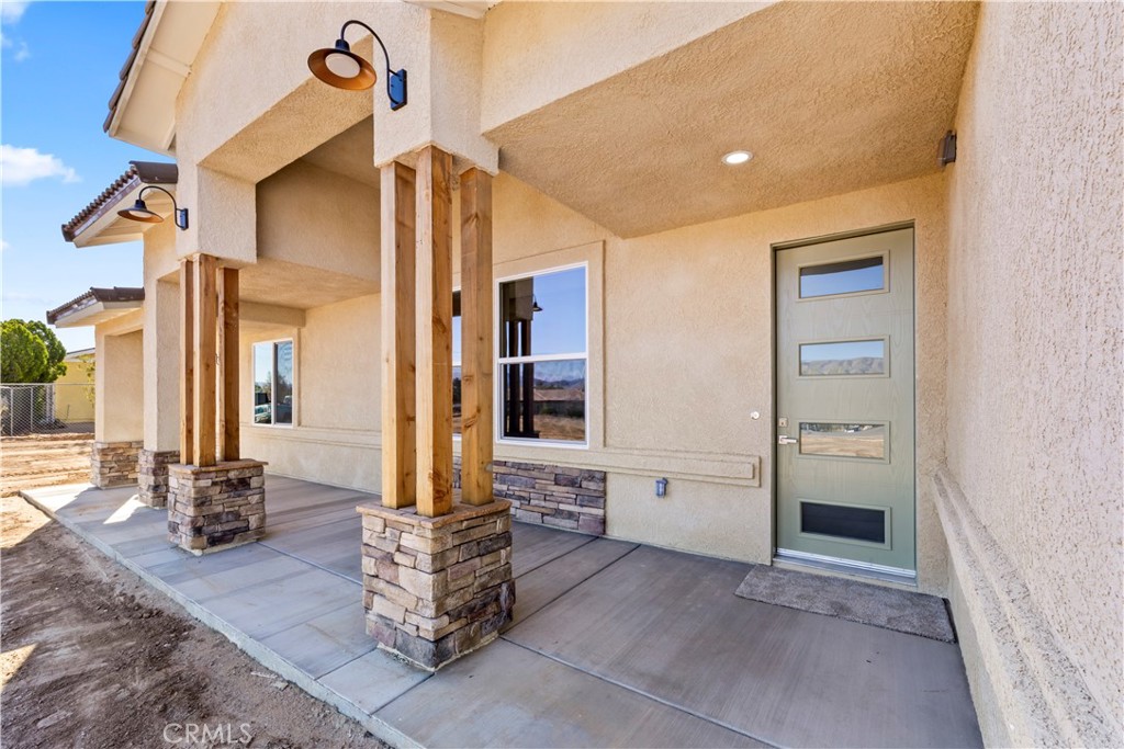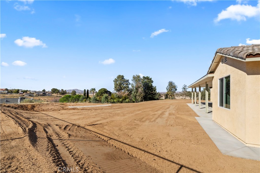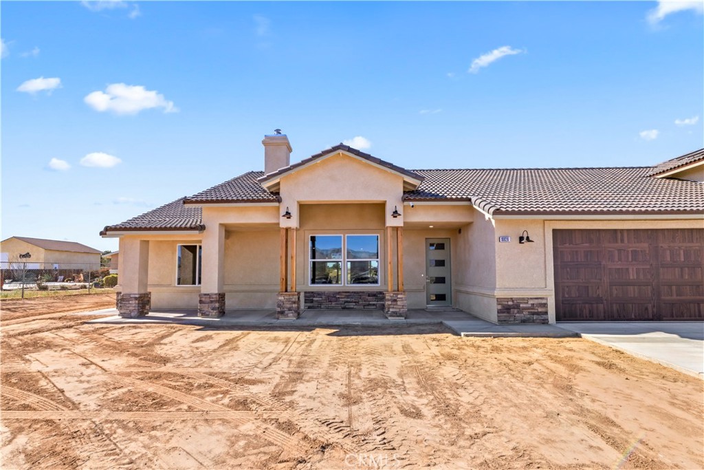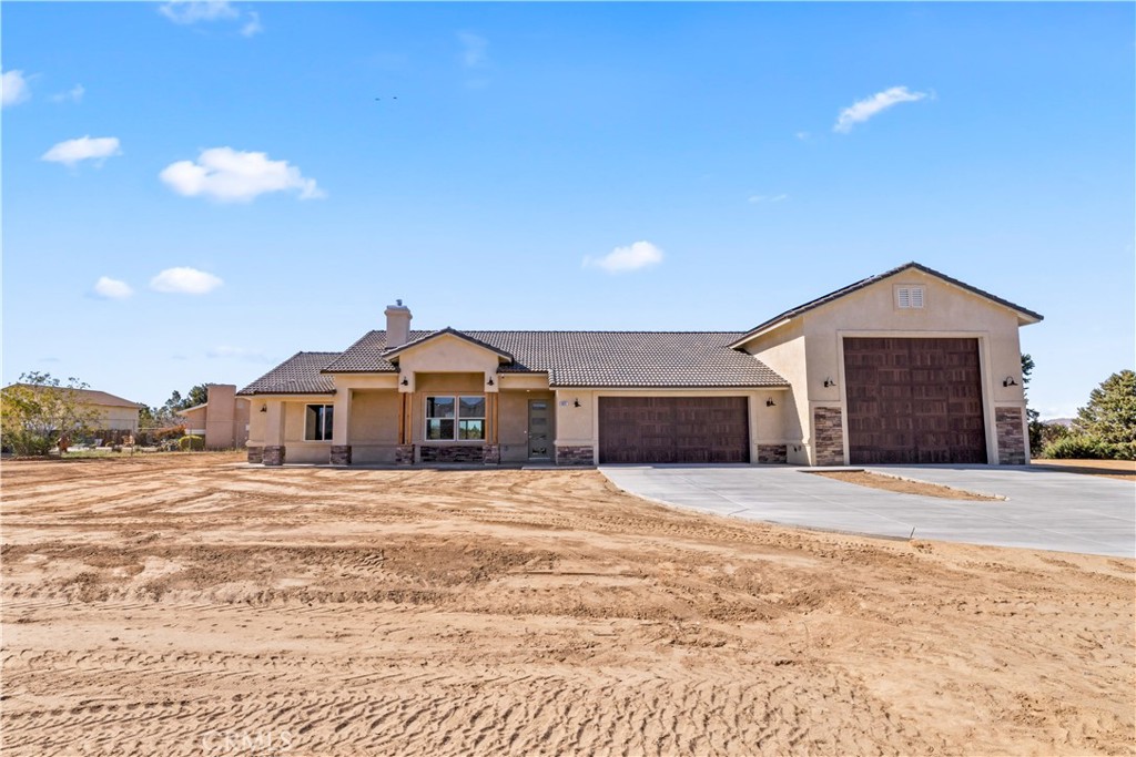 New construction, beautiful ranch style home on 1 acre with views of Mojave river, mountains, and city lights! 2100 ft.² 4 bed 2.5 bath, laundry room, open concept split floor plan, kitchen island with veggie sink , quartz countertops, white shaker cabinets , over 850 ft.² wood plank, ceramic tile floors, master suite offer soaking tub, large quartz shower with rain head, dual sink counter, separate coffee counter with an additional sink, linen cabinets, large walk-in closet with ladies vanity, beautiful ceiling fans, inside and out Kohler maxon toilets, upgraded faucets and fixtures throughout, airtight wood-burning stove, porch 10 x 20, patio 14 x 44 two car garage with a 18 x 8 door, RV garage 24 x 48 with 16 x 14 high doors in the front and 12 x 8 doors in the rear. all sectional insulated roll ups. RV garage has full hook ups with 1/4 bath and side exit door. both garages are insulated and pre-wired for mini splits, the home comes with upgrades like solar, double attic insulation, and high-performance windows. The home will stay cool and warm with very little cost! GUYS COME CHECK THIS HOME OUT