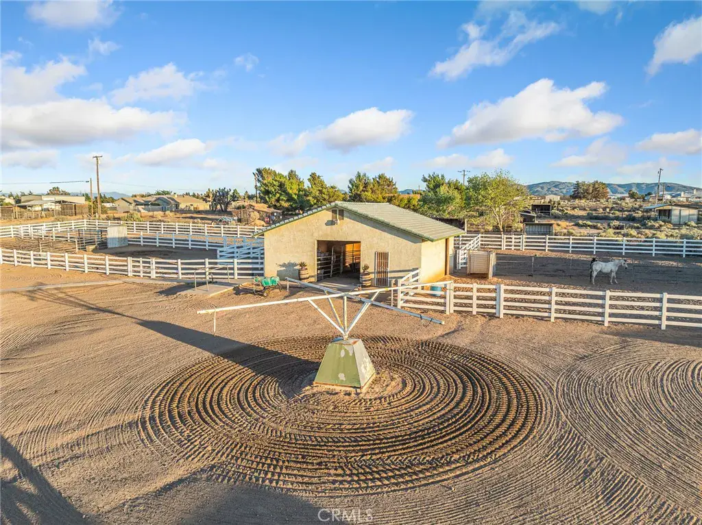 • Barn with 3 oversized stalls, hay/tack room, and large vinyl pens