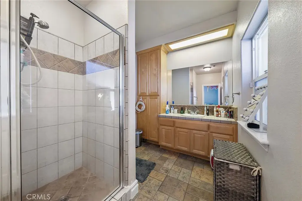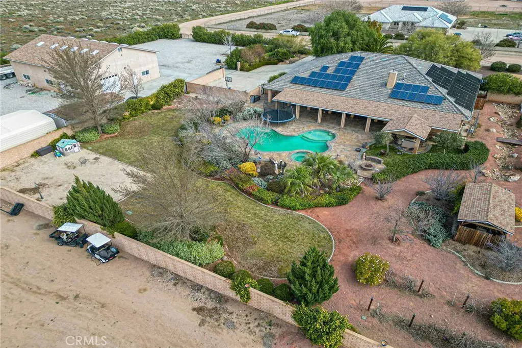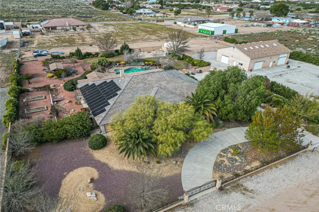 Step outside to an entertainer’s paradise with a sparkling pool and spa, fire pit, built-in BBQ, extended patio with electric shutters, and beautifully landscaped grounds. Enjoy the garden area with grapevines and fruit trees, fire ring, shed, metal boat cover, and automatic sprinklers. The property is fully fenced and cross-fenced for added versatility. A standout feature is the massive workshop/RV garage equipped with three automatic garage doors, air compressor system throughout, two sinks with hot water, its own water heater, full bathroom with shower, intercom system, alarm system, and full RV hookups. The shop has its own septic system, with a separate septic serving the home. Additional highlights include intercom throughout the house and shop, RV access to the shop, two septic systems, and close proximity to the I-15 freeway—ideal for commuters. This rare Oak Hills property offers space, functionality, and endless possibilities for multi-generational living, business use, or enjoying privacy and country-style living.