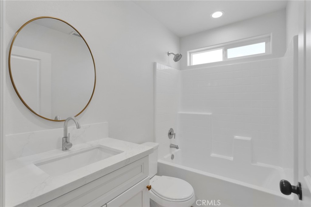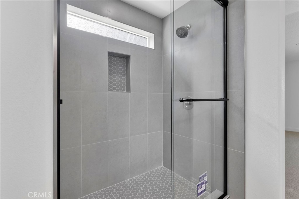 The primary suite is designed for relaxation, featuring a beautifully crafted tile shower that gives a clean, upscale feel to the space.
