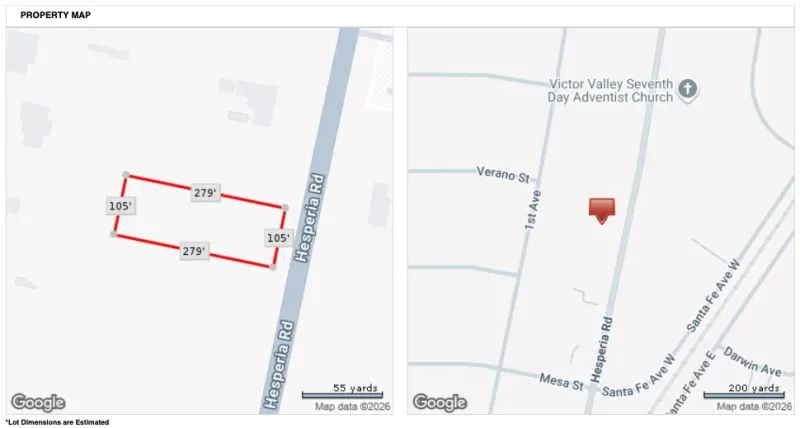 Prime opportunity to build in the growing city of Hesperia! This 29,400 square foot (.67-acre) vacant lot is ideally located on Hesperia Rd, offering excellent accessibility and visibility. Positioned near a local high school, established residential neighborhoods, and expanding developments, the property is surrounded by ongoing growth and demand.