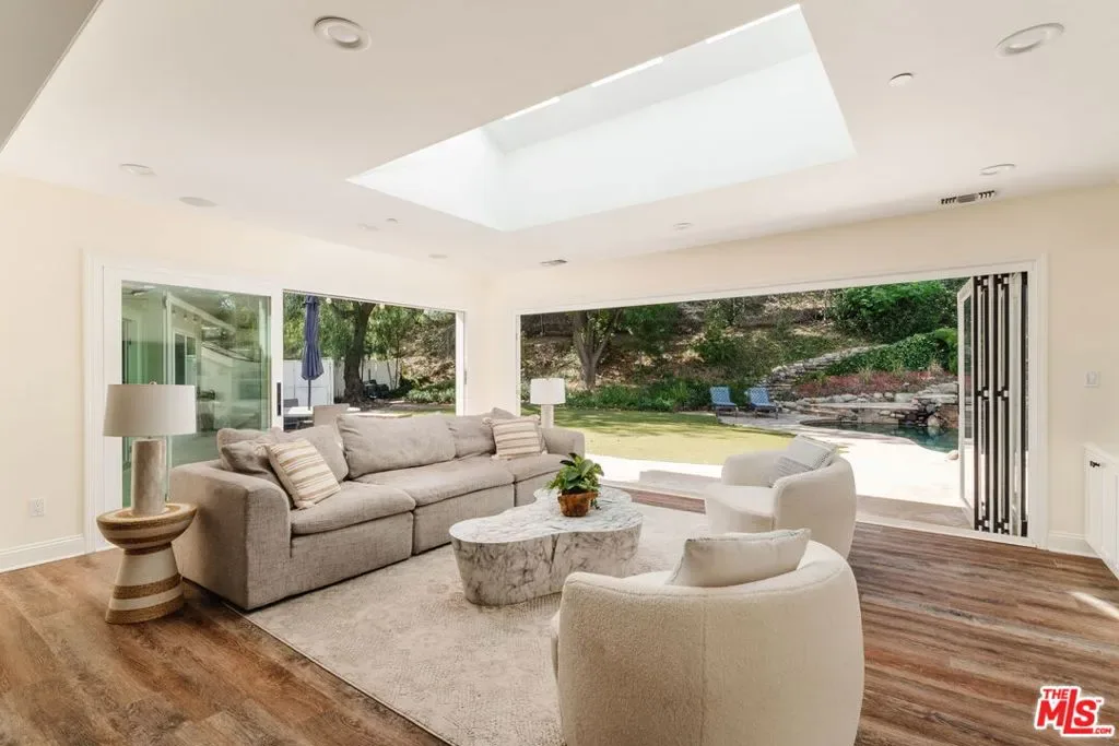 Best opportunity in guard gated Hidden Hills! Situated on an expansive 1.2 acres, you will find a rare, beautifully crafted single-story home with almost $1,000,000 in upgrades. This property offers a 6-bedroom, 6-bathroom main home spanning just under 4,000 square feet of open-concept living. Designed with entertaining in mind, this home features bi-fold patio doors that seamlessly connect indoor and outdoor spaces, opening to a spacious yard featuring a beautiful pool with beach entry and a slide, raised spa, serene gazebo, and a tranquil Koi Pond. The gourmet kitchen is a chef’s dream, boasting a spacious island with premium finishes perfect for hosting family and friends. The newly added primary suite is a true sanctuary, showcasing vaulted ceilings, abundant natural light, and a luxurious bathroom with a rainfall shower and jacuzzi tub. The home also features 5 beautifully appointed fireplaces throughout, and is equipped with an indoor sprinkler system. Every detail has been thoughtfully designed for comfort and sophistication. The charming, almost 500 square-foot addition offers two private rooms, a kitchenette and a bathroom, currently used by owners as a guesthouse. There is separate street access to the addition, while there is abundant parking available throughout. Beyond the home, the vibrant Hidden Hills community offers an array of exceptional amenities. Join neighbors at the community center for weekly summer BBQs and a variety of HOA hosted social events. The center features a large pool and spa, tennis, pickleball and basketball courts, a BBQ area, a private theater and recreational room. Horse enthusiasts will appreciate the equestrian facilities, including riding arenas and miles of trails. Don’t miss this rare chance to live in a truly special community that combines elegance, leisure, and connection. Make this Hidden Hills treasure your forever home!