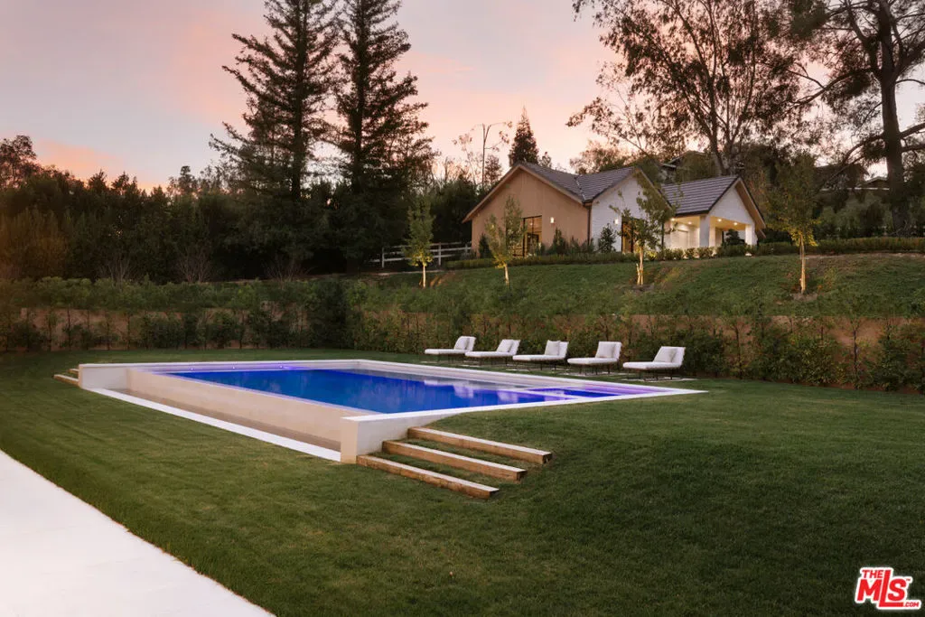 Tucked behind the gates of Hidden Hills, this modern estate unfolds like a private resort, offering over 16,000 square feet of effortless luxury. A dramatic entry and sculptural staircase open to expansive living spaces and a statement kitchen with dual waterfall islands, premium appliances, and a fully outfitted chef’s kitchen. Glass walls slide away to reveal a resort-style backyard with a reverse infinity-edge pool, spa, fire features, intimate lounge areas, and a refined guest house. The primary suite is calm and indulgent with a private terrace, spa-inspired bath, and dual custom closets, while the lower level elevates daily living with a wellness-focused retreat featuring a fitness studio, theater, cocktail bar, game room, sauna, steam room, cold plunge, and massage suite. Private, polished, and impeccably executed, this is luxury living at its highest level in Hidden Hills.