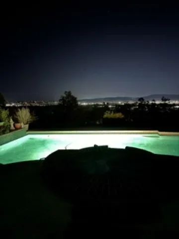 Custom home 4 bedroom 4 and 1 half bath 3811 square feet 960 sq ft 4 car tandem garage pool/spa salt system half acre view lot above east highland ranch. Home is one of a kind plans on site owner builder with many upgrades like a 400 amp elecrical panel easy ad on for additional bedroom in garage and 2 space ADU in back yard if desired. Master suite is downstairs library and game room open floor plan 20ft ceilings in great room covered patio fire pit balcony etc… too many upgrades too mention. 180 degree view of valley a must see