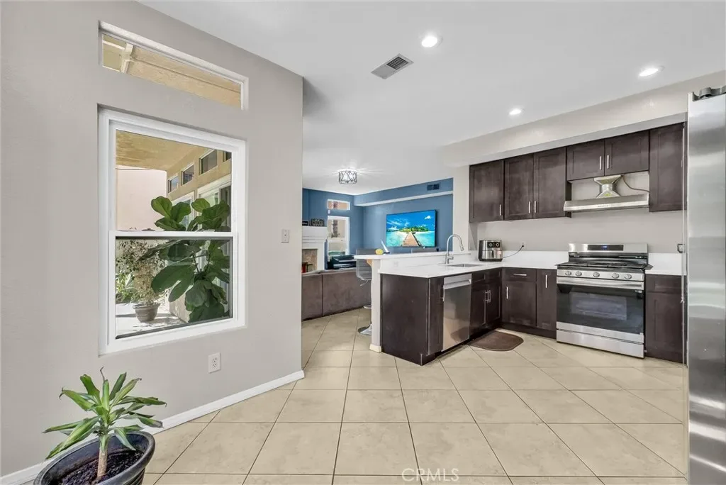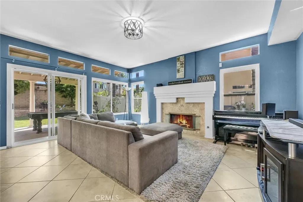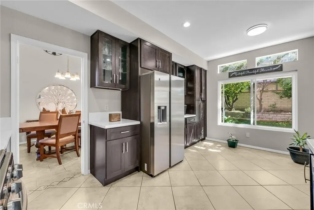 The remodeled kitchen offers updated finishes, ample cabinetry, and generous counter space, flowing seamlessly into the dining and family areas for a functional layout. The inviting family room features a cozy fireplace, perfect for relaxing and unwinding.