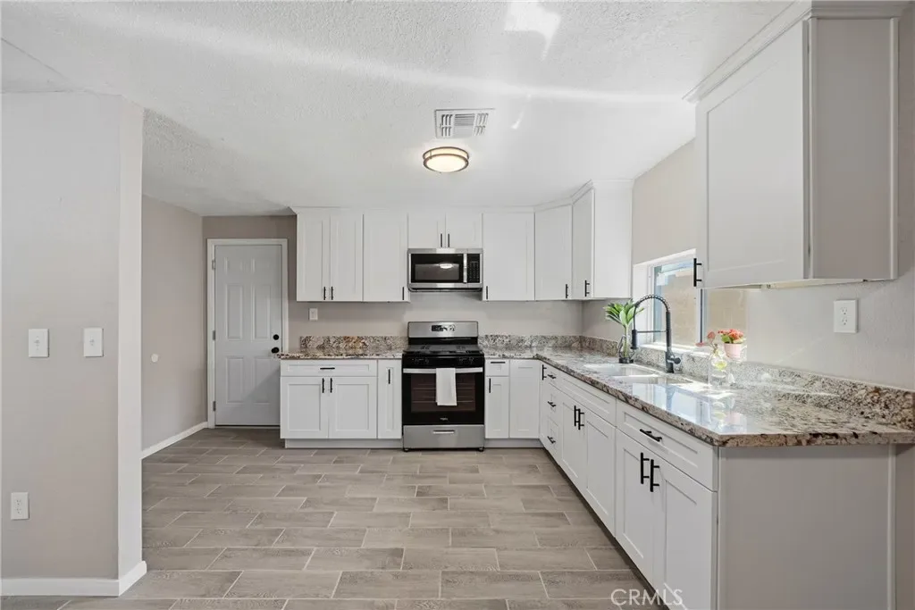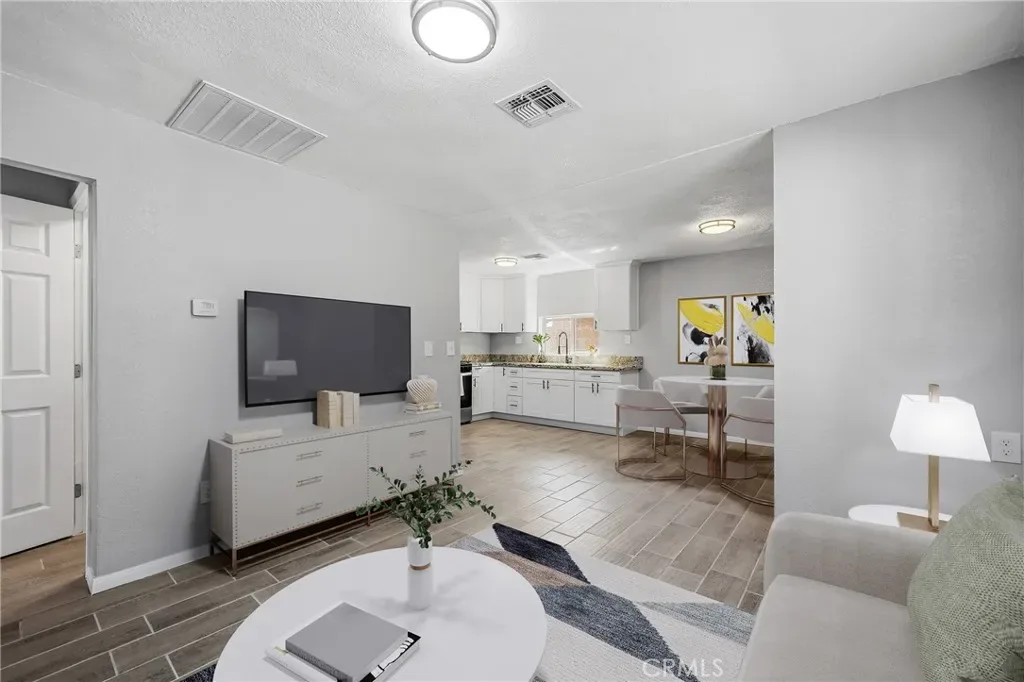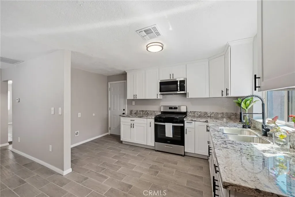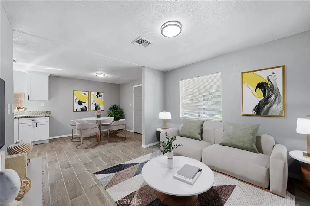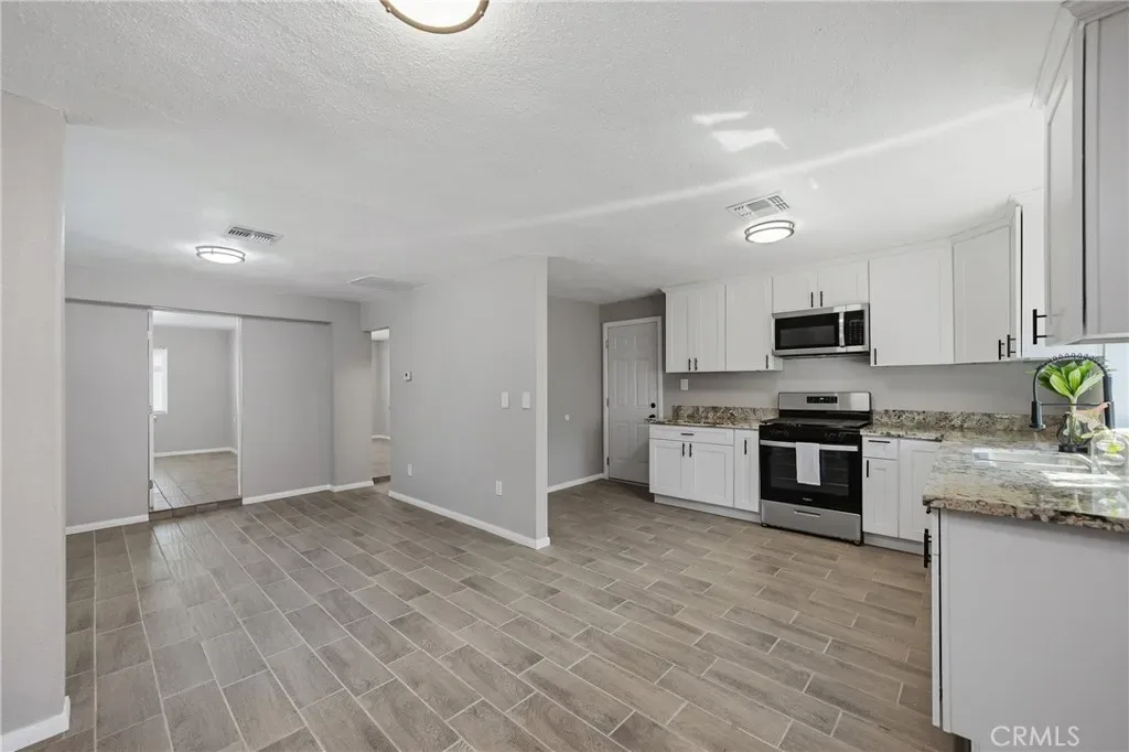 Inside, the home features a bright, modern layout with all-new finishes throughout. The kitchen has been fully redesigned with updated cabinetry, countertops, and appliances, while the bathroom has been completely renovated with custom tile work and a clean, contemporary look. New tile flooring flows throughout the home, complemented by fresh interior and exterior paint, new windows, doors, and updated lighting.