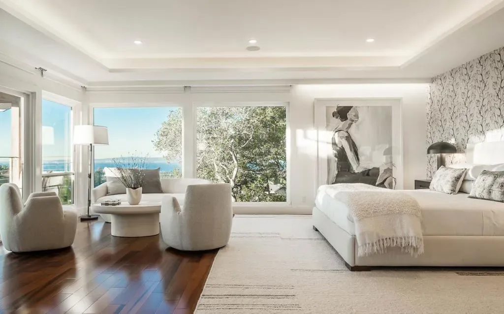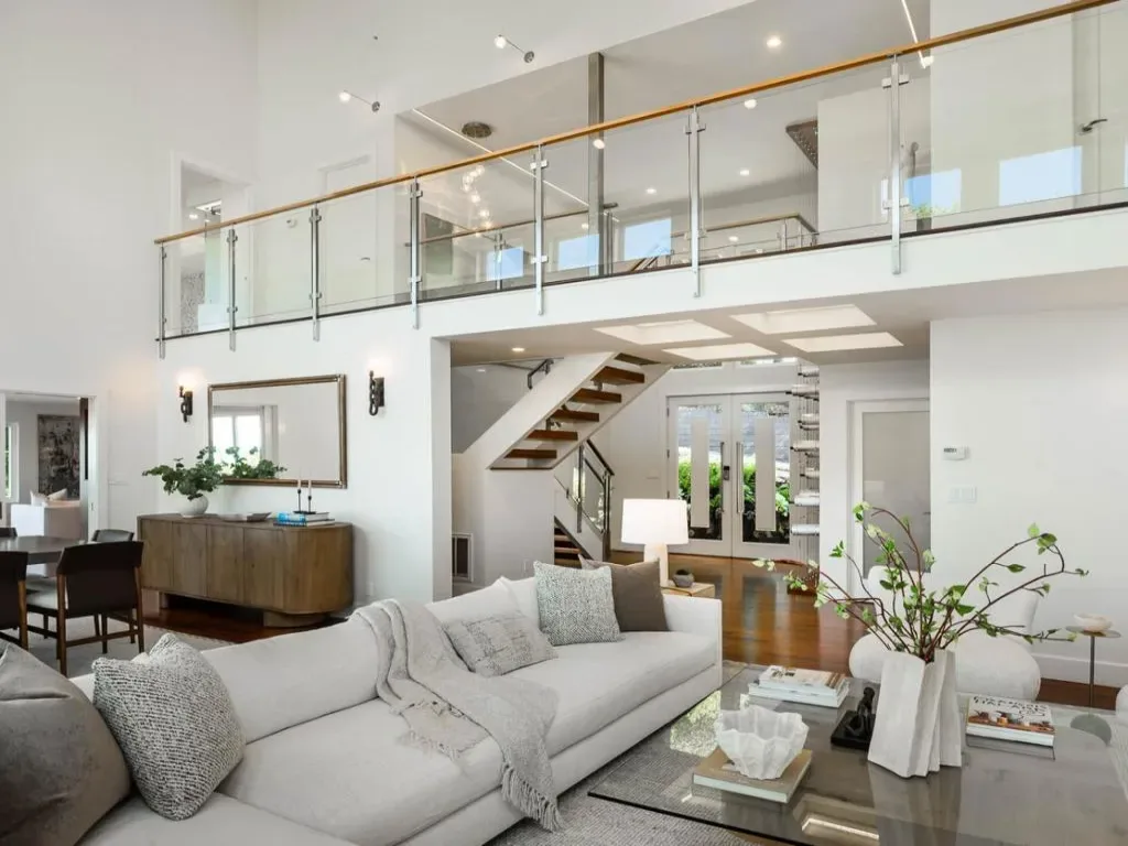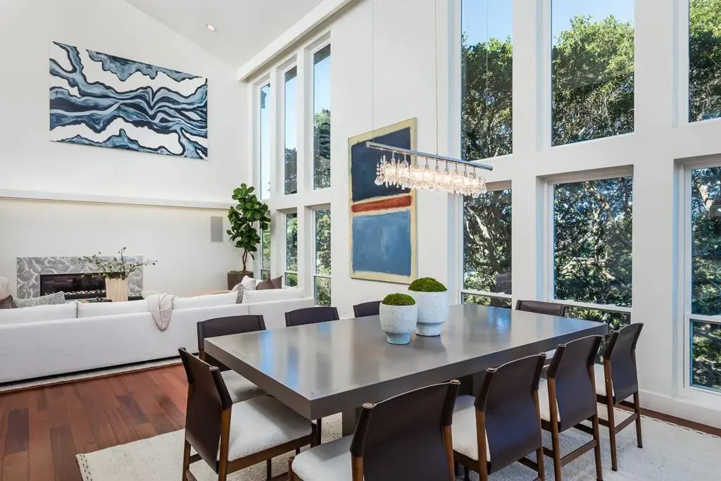 Commanding sweeping views of San Francisco, the Bay Bridge, and a glittering skyline, 1340 View Haven is a contemporary Hillsborough retreat designed to showcase its extraordinary vantage point. A private tree lined setting, the home unfolds through a dramatic double-height foyer with a glass-encased staircase and suspended artistic wine display. The house unfolds to expansive, light-filled living areas framed by walls of glass blurring the line between indoors and out. A sleek, European-style kitchen is anchored by a sculptural quartz island and premium appliancesseamlessly flows into dining and family areas, all opening to view terraces designed for elevated entertaining. The house has five bedrooms with a stunning primary bedroom retreat with panoramic outlooks, private balcony, fireplace, and spa-like bath. Outside, a view-facing pool and spa, fire pit, and heated terraces create a space for year round enjoyment. Recent structural enhancements include retrofitting to the deck, foundation, and retaining walls, reinforcing both integrity and longevity.