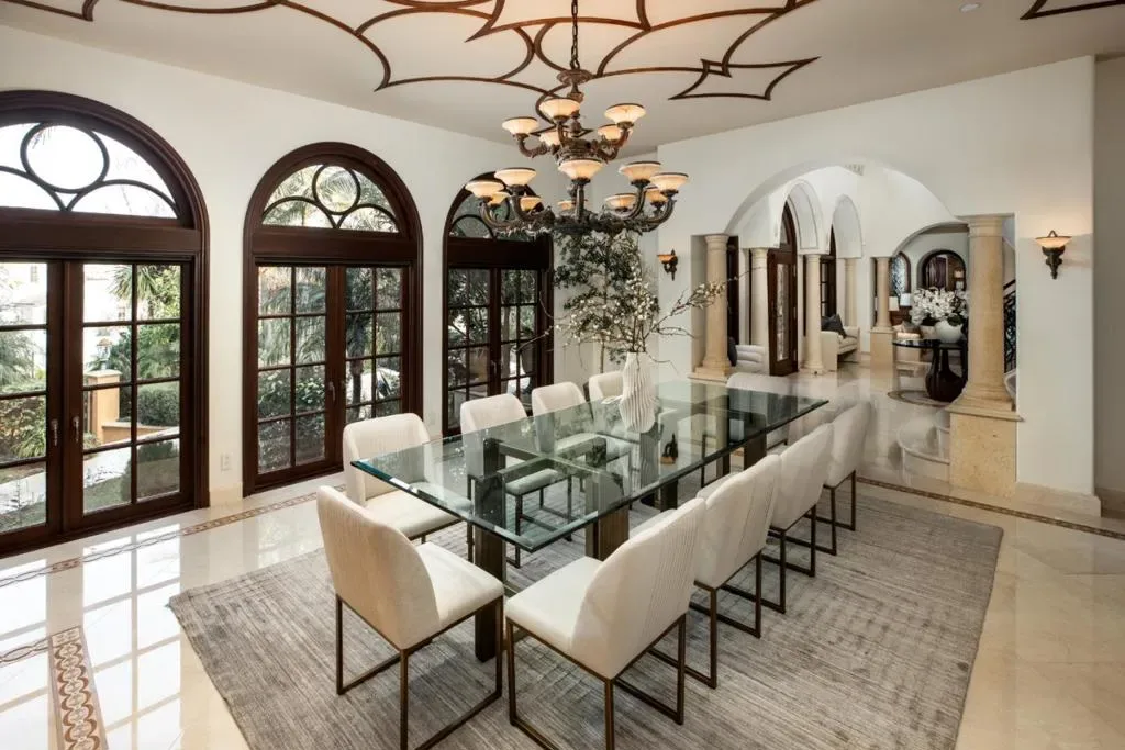 At a premier lower Hillsborough setting, this extraordinary estate stands as one of the finest in all of Hillsborough. This property delivers a lifestyle of luxury & scale across 1.3 level acres with exceptional privacy. The main residence unfolds over 3 expansive levels, each with generously proportioned rooms, elaborate architectural detailing & substantial volume. 6 bedroom suites, 2 offices, & a detached guesthouse provide outstanding flexibility for family, guests & extended stays. Grand public rooms are designed for formal entertaining supported by a chefs kitchen equipped to accommodate large-scale gatherings. The lower level is dedicated entirely to recreation & entertaining, offering multiple lounges, a commercial-quality cinema, an extensive wine cellar designed for a significant collection, a full bar, second kitchen, and a well-appointed gym w/steam shower & sauna. Outdoor amenities rival those found at private resorts. The grounds feature an oversized pool and spa with rock waterfall, expansive terraces, a covered loggia with full outdoor kitchen, and regulation-size tennis court currently surfaced for basketball. This is a property where scale, amenities, & location come together for an exceptional lifestyle.