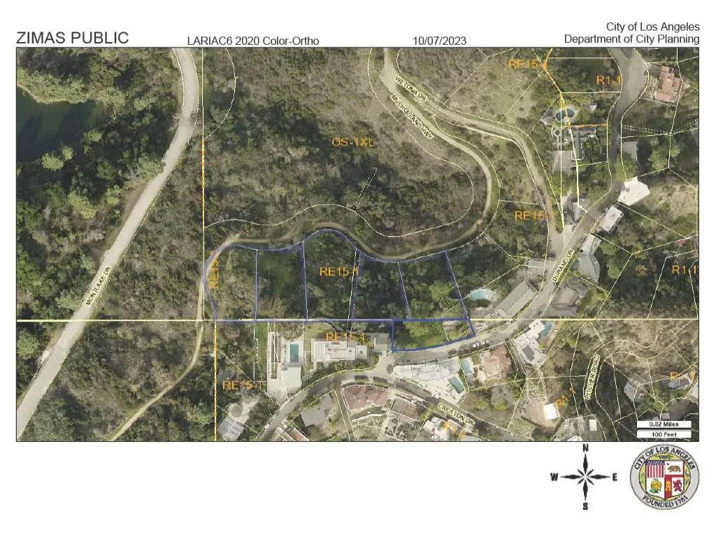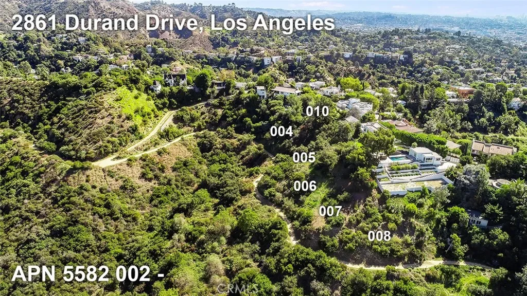 Spectacular building sites on the Durand Drive ridgeline in Beachwood Canyon. The property consists of 6 contiguous lots (1.57 acres, 68,250 SF, separate APN’s) with excellent views of the Hollywood sign, Lake Hollywood Reservoir, and Downtown Los Angeles. Downsloped from the street for a truly spectacular hillside custom home project with an extensive amount of land, rare for the Hollywood Hills. The entry lot has a flat area at the street level; homes on either side are in the multi-million dollar price range. This is a rare opportunity to build a large view home or multiple homes with plenty of land for gardens, trails, a dream compound within the scenic and famous Hollywood Hills. The views and exquisite natural surroundings are at your doorstep, offering the perfect setting for a stellar property. Hiking trails are adjacent, including the nearby circuit around the Hollywood Reservoir (3.5 miles, flat and serene) and more adventurous hikes up the hills and trails. It is a few blocks from the Beachwood Canyon Market and the Cafe and a short distance to commute to several major studios. These include Netflix, Universal, Disney in Burbank and Hollywood’s famed production sites. It is your peaceful retreat in the Hills, and minutes from Hollywood. Several nearby properties are in the $10M and more range. This 6 lot package is fit for a compound estate, or multiple homes, and presents a once-in-a-lifetime opportunity. The topography is downsloped from the street. City utility services are in the street; prestigious homes are on either side of this land on one of the best streets in Beachwood Canyon. The owners acquired through foreclosure wants to sell. Seller financing available to qualified buyers.