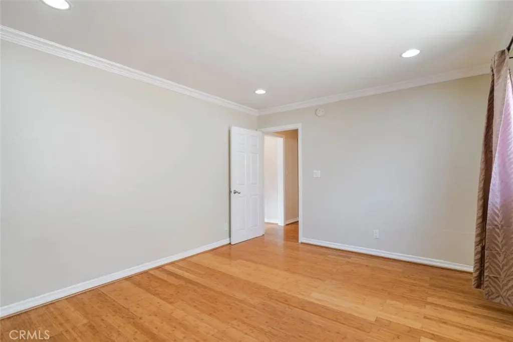 Great 2 bedroom, 2 bathroom lease opportunity in an ideal Hollywood location right on the West Hollywood border. This condo offers a spacious 1145 square foot floor plan featuring a great room with glossy floors, recessed lighting, crown moldings, and sliding doors that lead to a private balcony. A dining area with a hanging light fixture sits conveniently next to the long galley kitchen, which provides ample cabinet space, generous countertops, and a large refrigerator.