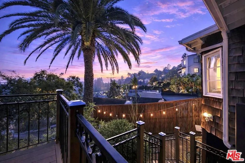 Freshly vacated and move-in ready with a brand new deck! This enchanting Hollywood Hills bungalow-style treehouse features sweeping views of the city, surrounding hills, and iconic Hollywood landmarks. Ascend the newly built deck and enter through the original Dutch door into a light-filled interior showcasing high ceilings, a charming accent fireplace, on-site laundry, and expansive windows with views that transition beautifully from peaceful mornings to glowing sunsets and sparkling night skies. The flexible layout offers 3 bedrooms and 2 bathrooms, with the third easily serving as a den, office, or yoga room with direct nature and city views and adjustable blinds for comfort throughout the day. French doors throughout open to multiple patios and entrances, creating seamless indoor-outdoor living, each patio ideal for entertaining, yoga, playground for kids, or weekend barbecues. The home has a 2 car garage plus additional space, offering a rare total of 3 dedicated parking spots. Thoughtfully designed and immersed in nature, this home delivers an authentic and elevated Hollywood Hills lifestyle.