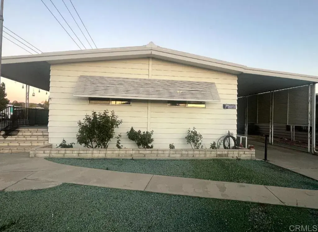 This charming manufactured home is situated on a much sought-after corner lot on a 433 certified permanent foundation in the highly desirable 55+ community of Highland Palms Senior Estates and Country Club. Where you own your land and No Space Rent! There is plenty of parking for up to 5 cars with 2 covered driveways. It has a workshop and a steel storage with a few electric outlets. This exquisite two-bedroom, two full bathroom home is ready for its new owner to relax and enjoy its many upgrades. These include: all new appliances, Della Mini-Splits AC/Heat, an updated kitchen with new composite flooring, and an island with a breakfast bar. Refurbished master bathroom with new bathtub/shower, toilet, mirrored wall cabinet and vanity with quartz counter. A low-maintenance yard has orange trees and an irrigation system with an automatic timer. The HOA offers access to an executive golf course, pickleball courts, a heated/saltwater swimming pool, sauna, fitness room, library, card room, billiards room, bingo, picnic/barbecue area, secure mail room, RV storage and much more. This home has many enhancements with lots of great amenities waiting for you to move in.