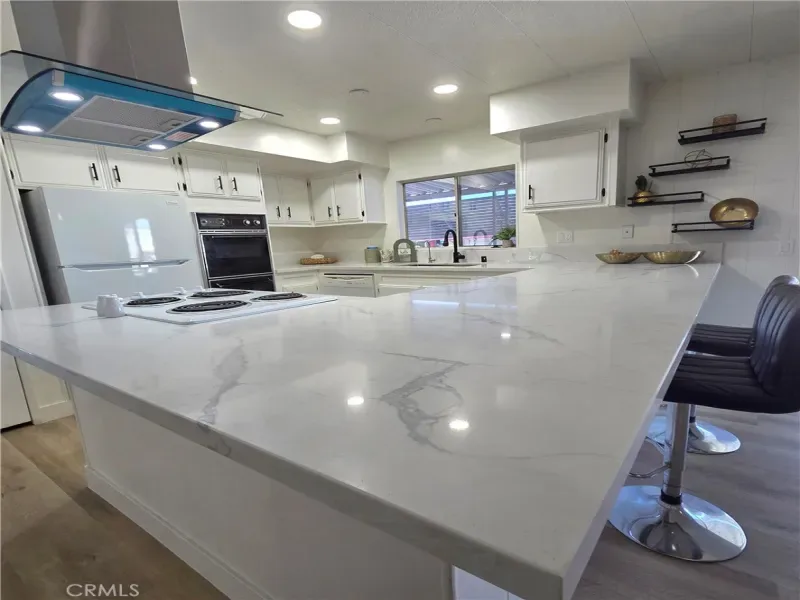PRICE DROP!! Welcome to this newly updated 2-bedroom, 2 full bath home located across from the gold course in the highly desirable 55+ community of Highland Palms Senior Estates and Country Club. As an owner in this community, you own the land and there is no Space Rent! This home provides covered parking and 2 large sheds in the back. The home was upgraded with vinyl waterproof flooring, quartz counter tops and 2 living areas perfect to add a 3rd bedroom or have a formal dining area. The home was recently painted on the interior and exterior and has n ewer windows in the front and new sliding glass door by the covered front patio. the front is located right across from the golf course and has beautiful mature fruit trees. The HOA fee is low and offers access to pickleball courts, a heated/saltwater swimming pool, executive golf course, sauna, card room, billiards room, fitness room, library, bingo, picnic/barbecue area, pickle ball, RV storage, secure mail room, and much more. The home is move-in ready and the seller is motivated.