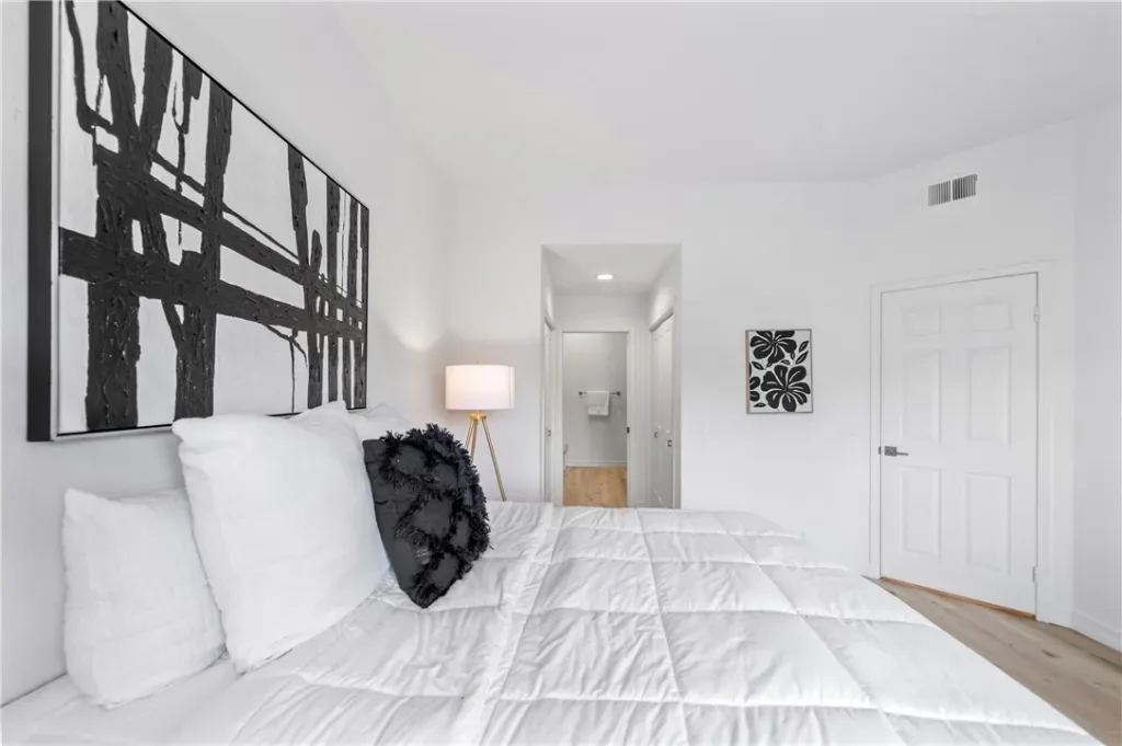 The spacious primary suite is a true retreat, featuring a generous double closet and a luxurious double-vanity bathroom. Step outside and take in the serene, picturesque pond view right from your own private double patio.