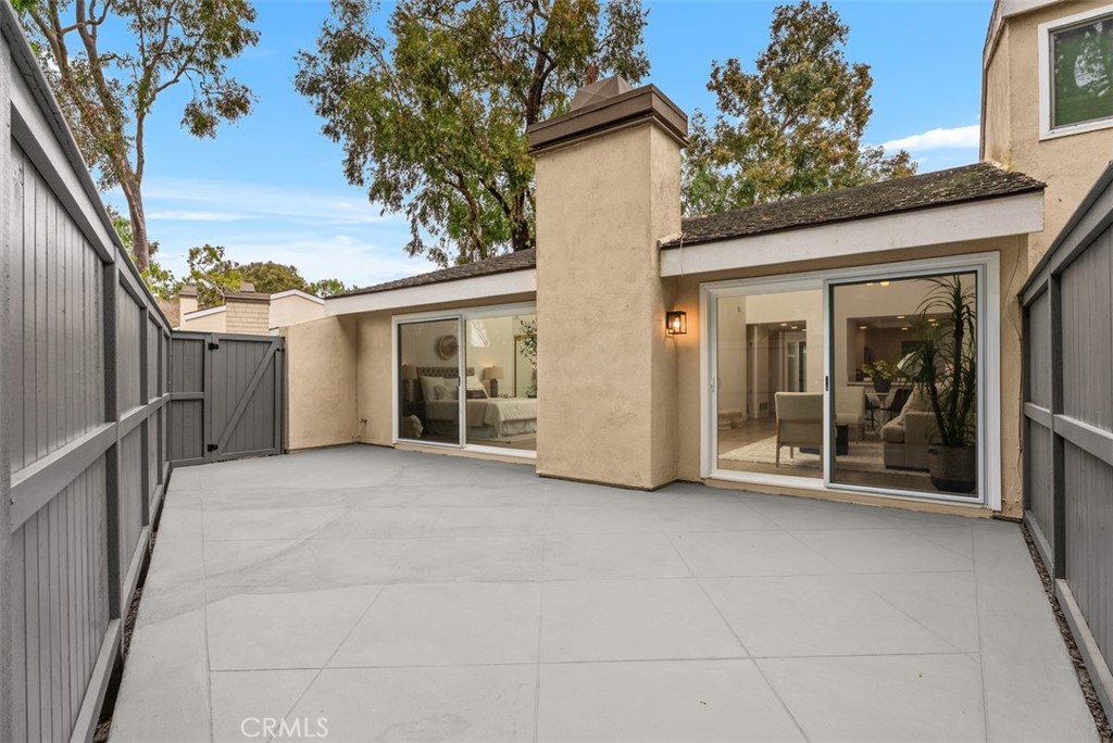 This sunny location end unit features an open floor plan, wide plank vinyl flooring, vaulted ceilings, skylights, recessed lighting, new interior paint and bathroom windows rarely found in interior units. The kitchen boasts shaker-style cabinetry with soft close drawers, marbled quartz counters and backsplash, bar seating and opens to the main living area with gas fireplace, stacked stone, wood mantle and sliding doors to a private back courtyard with new fencing and a side gate. The primary bedroom suite enjoys back courtyard access, vaulted ceilings, dual closets and an ensuite bathroom with double vanities and an oversized walk-in shower. The 3rd bedroom is configured as a home office with sliding glass doors to the gated front courtyard. Add’l features include: new 200-amp main electrical panel with 100-amp subpanel, epoxy garage flooring, Level 2 EV charger, washer/dryer, water softener, built-in and overhead garage storage, and recent Section 1 termite clearance.