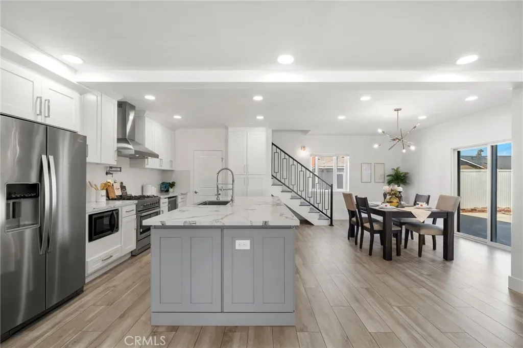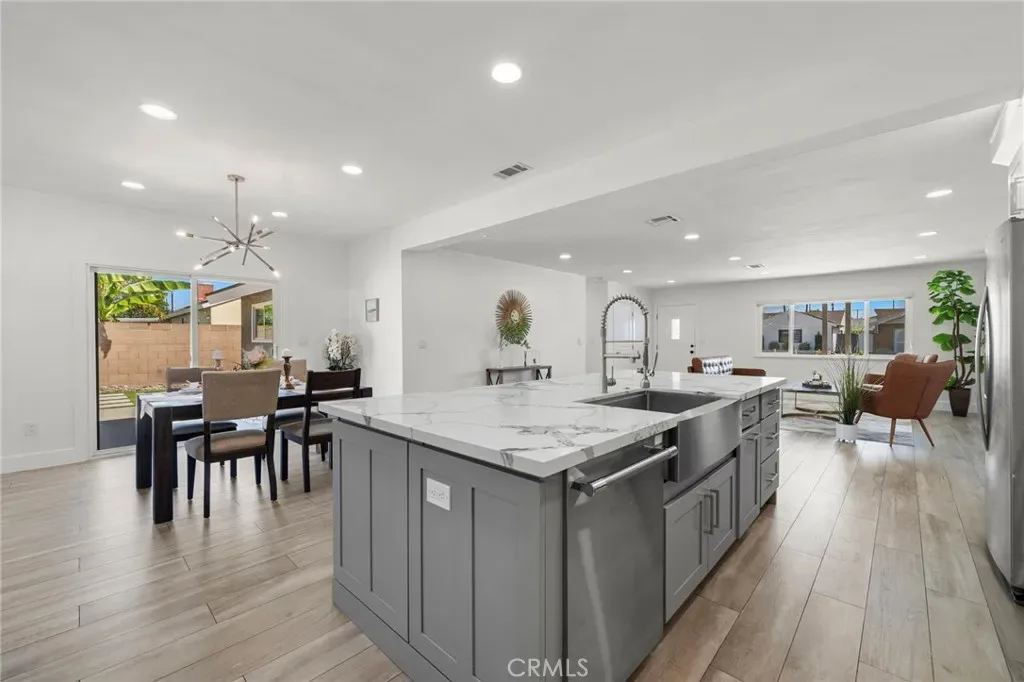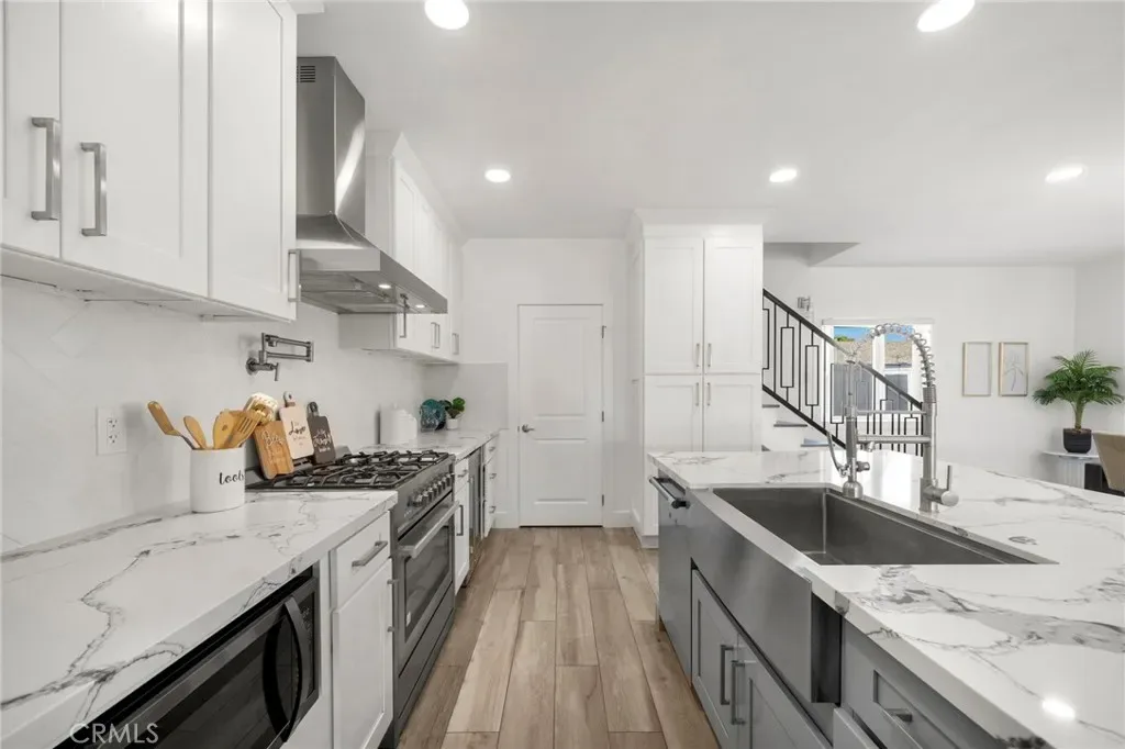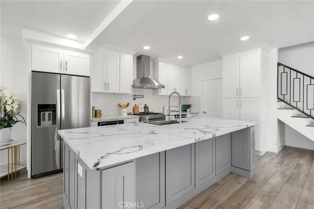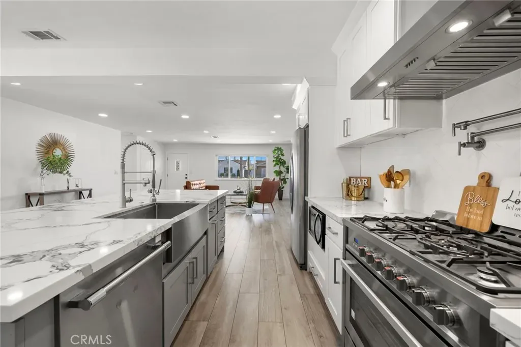 Step into this beautifully reimagined coastal retreat, where modern design meets effortless comfort. This thoughtfully renovated home offers a highly desirable dual primary suite layout and showcases quality craftsmanship throughout. From the moment you enter, you’ll notice the fresh, top-to-bottom upgrades and airy open-concept floor plan—perfect for both everyday living and entertaining. The light-filled living room flows seamlessly into the dining area and a stunning, fully redesigned kitchen. Featuring white shaker cabinetry with soft-close drawers, a generous center island, quartz countertops with a marble-inspired finish, subway tile backsplash, stainless steel appliances, a farmhouse sink, wall-mounted pot filler, and a spacious walk-in pantry, this kitchen is truly the heart of the home. Wide-plank wood-look tile flooring and recessed lighting carry throughout, creating a bright and cohesive feel in every room. The main level includes a primary suite, two additional generously sized bedrooms, two beautifully updated bathrooms, and a direct-access three-car garage with an expansive driveway. Upstairs, you’ll find a private second primary suite offering a luxurious en suite bathroom complete with oversized porcelain tile flooring, a soaking tub, a walk-in shower with rainfall showerhead, designer tile surrounds, and a large walk-in closet. Additional upgrades include a brand-new central HVAC system and a solar-ready electrical panel. Ideally situated just minutes from the coast, with convenient access to the 405 freeway, Bella Terra, Pacific City, Huntington Central Park, and a variety of dining and entertainment options.