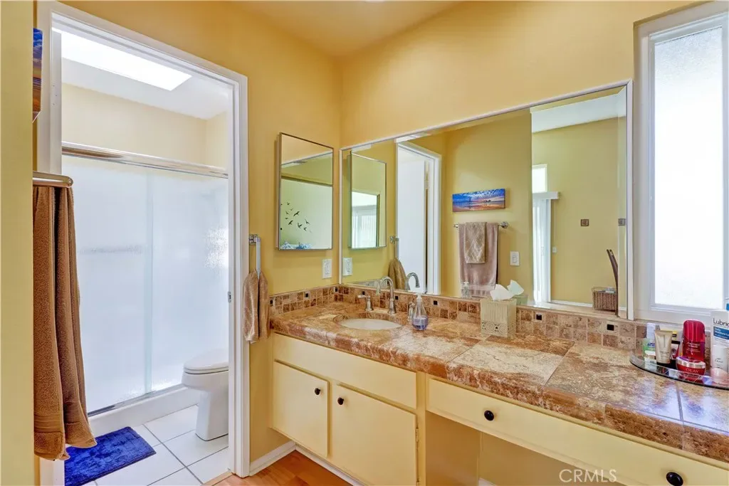 Located Near the Main Rec Center, This Popular 2 Br Single Story Breakers Model has 2 Patios. The Private center Atrium Patio is like a Giant Skylight to the Living space and is a Great Source of Air Flow. The Inviting Second patio is off the Guest Bedroom & has Beautiful tile and a vinyl fence. When you enter, you are greeted with a Spacious Living Room with Vaulted Ceilings and Plantation Shutters. Scraped Ceilings throughout. Laminated Wood flooring t/o and tile in both baths. Kitchen has Granite Countertops, Backsplash, Recessed Lights with Crown molding and Updated Appliances. Dining Area has a tasteful Ceiling Fan for those hot days, a Dual Paned Slider onto the Center Atrium patio and Bali shades. Both Bath showers have been Reglazed and have Large Skylights allowing for so much Natural light to Stream into the space. Guest Bath is nicely updated with Granite countertops, Mirror, Faucet, Lighting and Comfort Height toilet. The Primary Bedroom has a Vaulted Ceiling, a Ceiling Fan and has so much light with the Dual Paned Slider and Window. Primary Bath has Recessed Lighting, Granite Countertops, a Comfort Height Toilet & an updated Window. Condo has been Repiped. Included Washer & Dryer in interior hall Closet. Furnace Replaced. The Garage is right off the Back of the Condo. Feels Like Being at a Resort with a Fabulous Recreation Center. 2 Pools, 2 Spas with Main Rec Center Pool being almost Olympic Size! Tennis Courts, Pickleball Courts, Ping Pong, Dances, Trips, Movies, Clubs, Parties, Concerts, Fitness Center, Fitness classes-Water Aerobics, Yoga & Zumba, Woodshop, Chorale, Quilters, Art & Ceramics Clubs & Classes, Billiards, Putting Green, Library & Much More. Well Maintained Grounds with Mature Trees. Hunt Landmark is located close to the Post Office and Grocery Store and Famous Beaches of Huntington Beach. Near the HB Pier, Downtown Area & Pacific City. You are Close to Shopping and the Post Office. 24 Hr Guard Gated 55+ Community Near the Ocean (Approx.1.2 Miles)