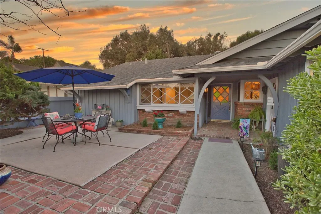 RARELY ON THE MARKET! THIS is the breath of fresh air you’ve been longing for! Located near the fairway of the 15th hole of Meadowlark Golf Course, sweeping panoramic golf course and sunset views can be yours from your very own natural backyard garden paradise. You’ll feel like you’re on an extended vacation every day yet living in a very special and peaceful home. Originally a 4-bedroom home (and easily reconverted), this warm and welcoming, spacious, comfortable and well-loved home is truly a gem that will captivate you from the curb. SO CHARMING and thoughtfully curated! Entrance to this single level home is past the magnificent honey locust tree, up the cobbled brick steps and into the private, gated courtyard patio with covered brick porch. You’ll be greeted at the vivid diamond windowed door and welcomed inside to the foyer. The East-facing, kitchen windows overlook the porch and courtyard. Sunny, updated kitchen features rich wood cabinetry with solid surface counters enhanced by a classic ornamental tile backsplash, BRAND NEW (April 2026) GE French door refrigerator and dishwasher; GE convection/microwave/wall oven and glass cooktop range; a long breakfast island and adjacent dining area with newer dual pane window view to the side yard. The large living room features a rustic brick fireplace with honed live edge wood mantel and French doors leading to the professionally designed (by the Plant Nerd) backyard garden retreat. More wonderful features include: Beautiful engineered wood flooring flowing from the entrance through the living room and hall, with newer, deep plush neutral carpeting in the bedrooms; gorgeous remodeled Italian-inspired bathroom with freestanding oval tub and dual sinks in the hallway; 3 generous-sized bedrooms, including a large primary bedroom with upgraded en-suite bathroom; a NEW (Feb 2026) 200 amp electrical panel; 50-year roof was replaced in 2007. SUPERIOR 92649 LOCATION within an easy distance to EVERYTHING, including shopping, retail, Award-Winning Ocean View Schools, Chris Carr Neighborhood Park; houses of worship, fantastic restaurants/eateries, entertainment, fitness centers, freeways & MORE! Huntington Harbour & Mall, the Bolsa Chica Wetlands & Preserve, the Pacific Ocean, Golden West College and Bella Terra outdoor shopping center are all within a few miles. You will LOVE this Home!