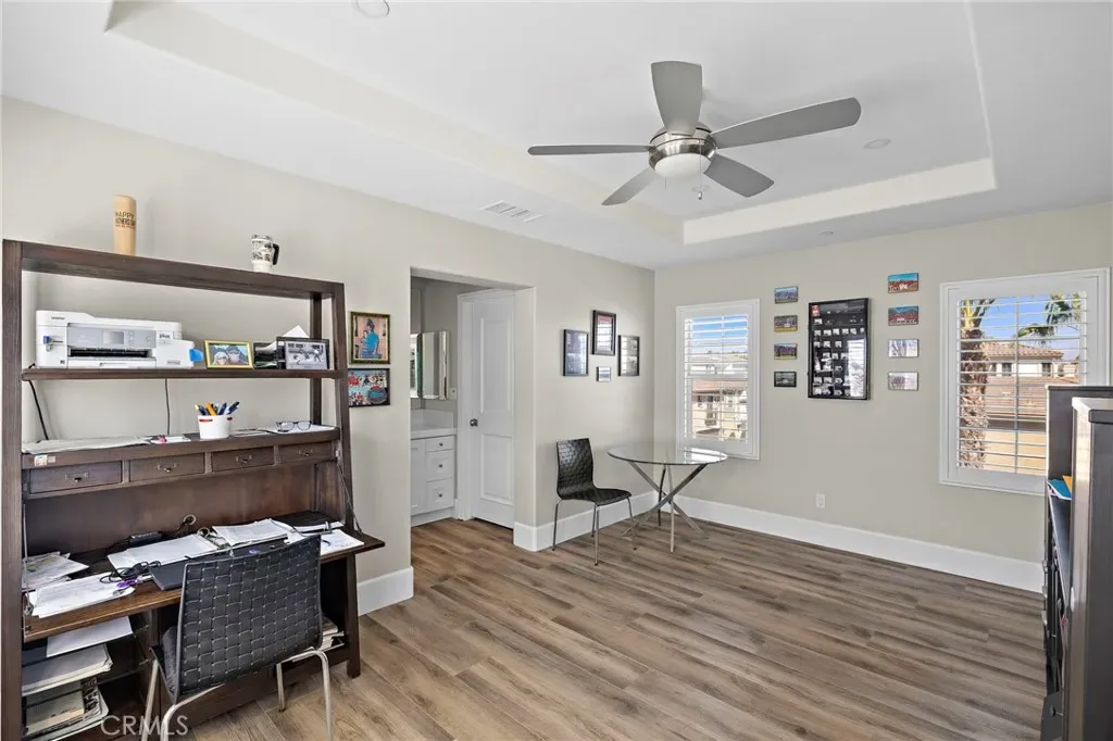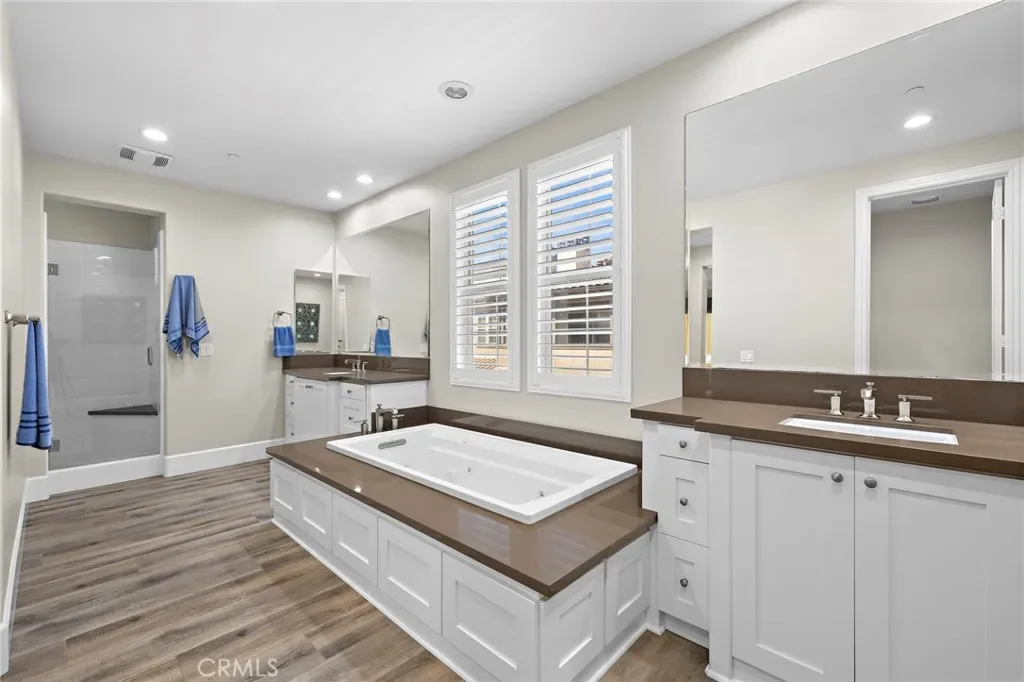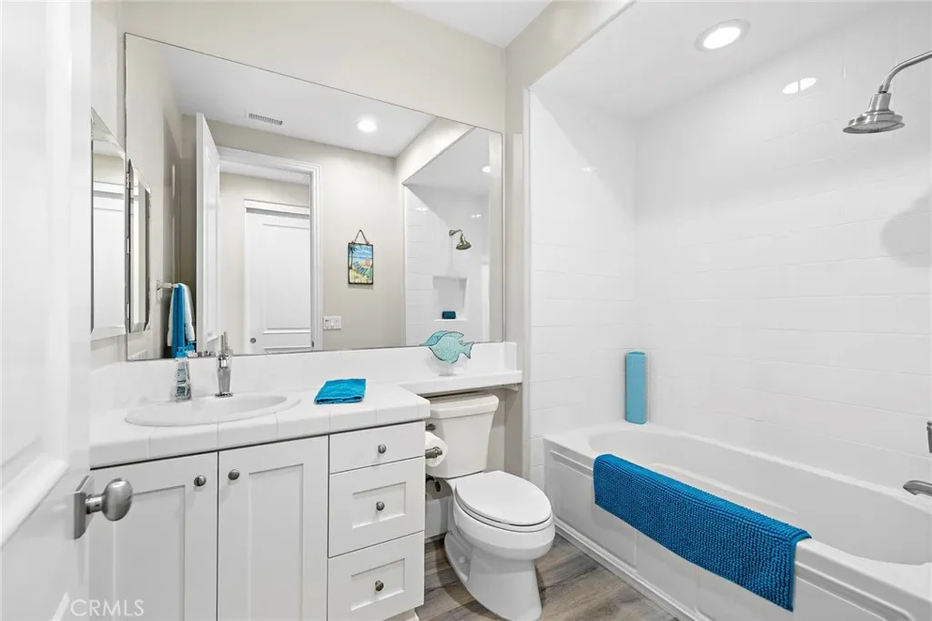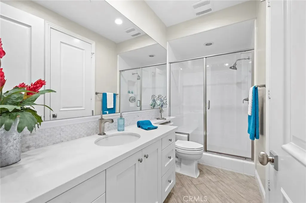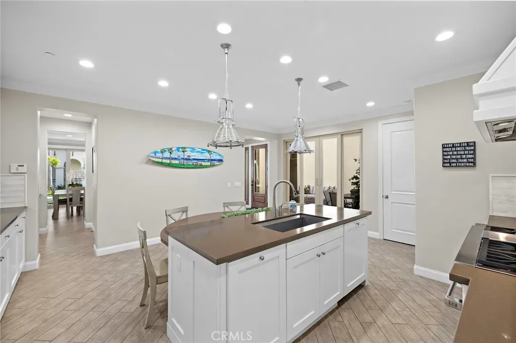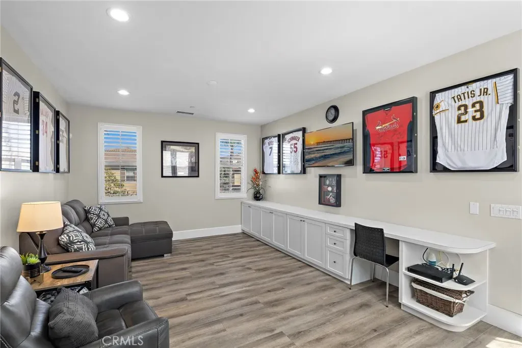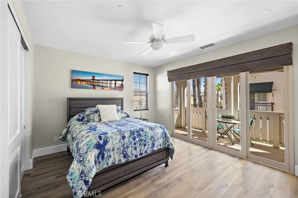 Welcome to coastal luxury living in the highly sought-after Pacific Shores Villas, ideally located in the heart of Huntington Beach just two blocks from the sand. Perfectly positioned to enjoy the best of beachside living, this exceptional residence is within walking distance to Pacific City, premier restaurants, boutique shopping, and everything that makes Huntington Beach one of Southern California’s most desirable coastal destinations. This expansive 3,763 square foot corner home offers an ideal blend of sophistication and functionality, featuring five spacious bedrooms—each with its own en suite bathroom—including a highly desirable main-level bedroom perfect for guests or multi-generational living. Thoughtfully designed with both comfort and style in mind, the interior showcases luxury vinyl plank and wood tile flooring throughout, custom shiplap accents, and beautifully integrated built-ins that elevate both form and function. The open-concept layout is enhanced by a chef’s kitchen appointed with high-end appliances including a Wolf oven, complemented by a butler’s pantry for added convenience and seamless entertaining. A generous loft with built-in storage provides flexible living space, while the second-floor laundry room with sink adds everyday ease. Designed for long-term versatility, the home is prepped for a future elevator, with substantial storage space currently located beneath the stairs where installation can be accommodated. Indoor-outdoor living is effortless, with two balconies, two private patios, and a welcoming front courtyard entry—perfect for enjoying ocean breezes and coastal sunshine. The third-level bedroom offers a peek-a-boo ocean view, adding a subtle reminder of just how close you are to the water. Additional highlights include dual air conditioning units and an oversized three-car garage with extensive built-in storage. Situated within a gated community, residents enjoy beautifully maintained grounds with parks, greenbelts, and inviting spaces for outdoor enjoyment, all just steps from your front door. Whether you’re biking to the beach, walking to nearby dining, shopping, and entertainment, or simply enjoying the relaxed coastal lifestyle, this home captures the essence of living in the heart of Huntington Beach. A rare opportunity to own a truly exceptional property in one of the most coveted coastal communities—this is Southern California living at its finest. Welcome to Paradise!!!!