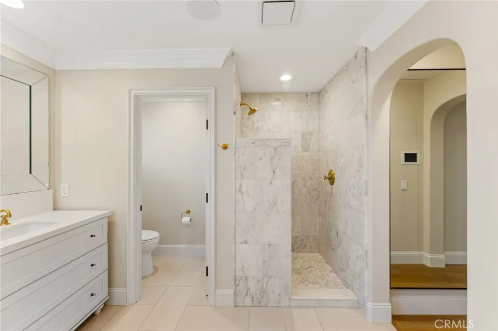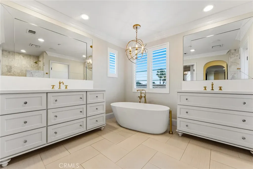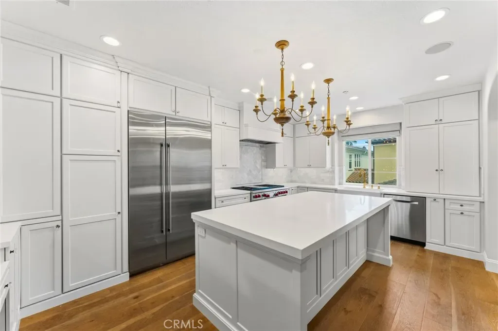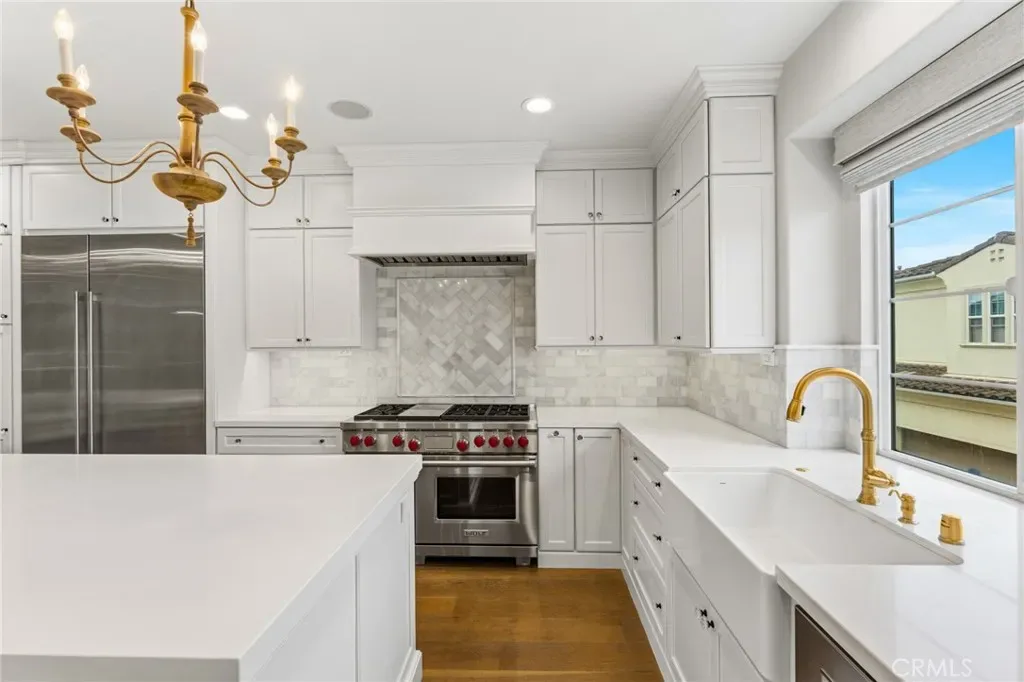 So spectacular it feels straight out of Architectural Digest, this absolutely breathtaking, fully reimagined 3-story townhome in the exclusive gated Waterfront Community is quite simply one of the most exquisitely upgraded residences to ever hit the market. No expense was spared in its complete transformation, showcasing the finest materials, appliances, fixtures, and craftsmanship throughout. Located steps to the sand, behind the Hilton & Hyatt Resorts, this home offers a true resort lifestyle in one of Huntington Beach’s most coveted coastal enclaves. This stunning residence features 2 ensuite bedrooms (one on ground level), a versatile flex room perfect for office, guest retreat, or bunk room, 2.5 beautifully appointed baths, an inside laundry room w/added cabinetry for optimal functionality, and an oversized 2-car epoxy-finished garage w/built-in storage. Enjoy seamless indoor-outdoor living with a ground-level interlocking paver patio and an upper-level balcony, both enhanced w/retractable screens to capture the ocean breezes. The lower level offers a private bedroom w/French doors to patio, porcelain wood-grain tile in a sophisticated chevron pattern, while the rest of the home boasts wide-plank wire-brushed French oak flooring, handcrafted staircase railings, Milgard windows, solid wood interior doors, plantation shutters, LED recessed lighting, crown molding, and designer Restoration Hardware fixtures that elevate every space. The second level is an entertainer’s dream, featuring a show-stopping chef’s kitchen with quartz countertops, an expanded center island w/seating, built-in desk, custom Omega soft-close cabinetry & Emtek hardware. Top-tier appliances include a Sub-Zero refrigerator and a 48-inch double-oven Wolf range. Adjacent to the kitchen is a sophisticated living room with fireplace, surround sound, and a custom-built quartz wine bar w/marble mosaic backsplash & glass display cabinetry. An intimate dining area w/exquisite chandelier completes this level, along with the versatile flex space/home office. The entire third level is dedicated to a luxurious penthouse-style primary suite that feels like a private five-star resort. This serene escape features a retreat, enormous walk-in closet, and spa-inspired bathroom w/dual vanities, Carrara marble shower, quartz countertops, and freestanding soaking tub. Experience the ultimate year-round vacation lifestyle in this exceptional coastal residence. This is truly paradise living at its finest.