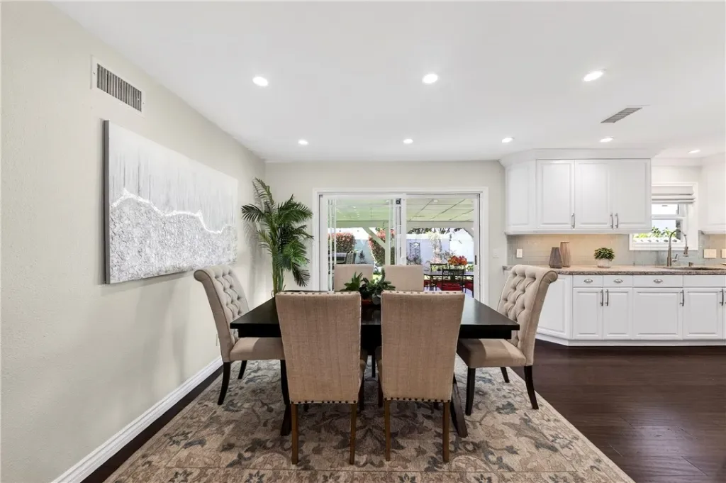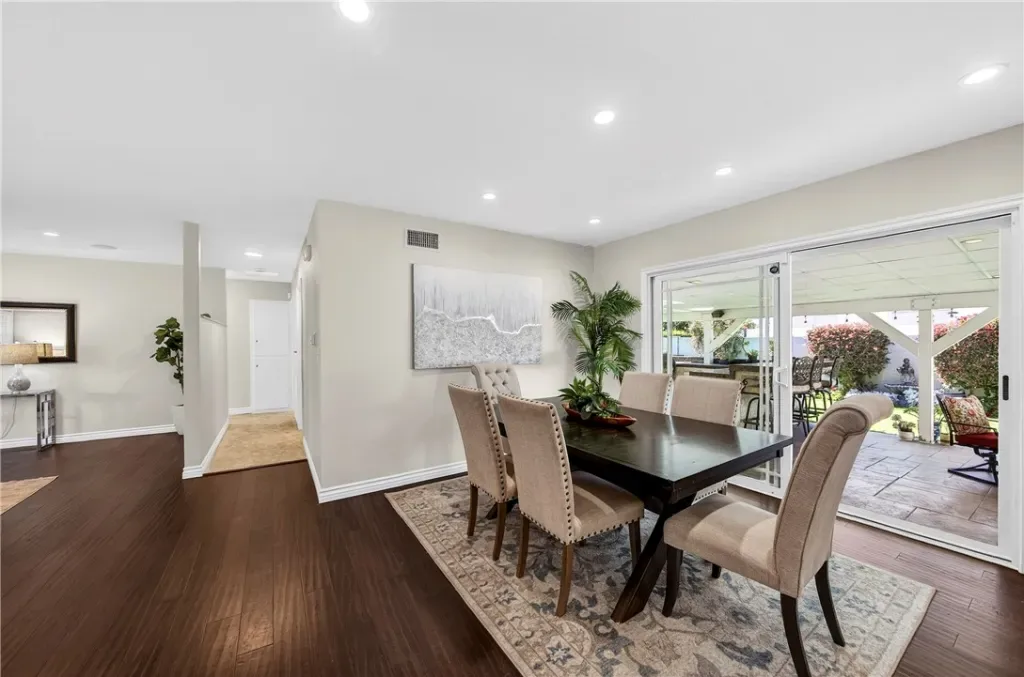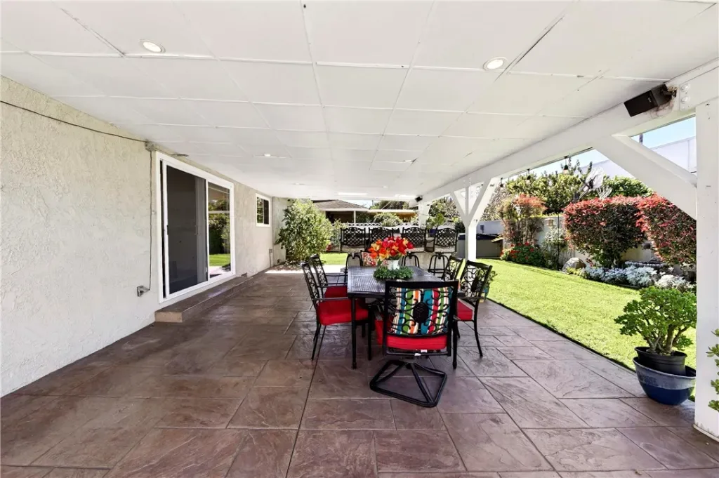 Step inside to an open, entertainer-friendly floorplan, where the spacious living room flows seamlessly into the updated kitchen and dining area. The dining space opens to an expansive covered patio—perfect for gatherings—with a built-in BBQ island, ample counter space, and bar seating. The patio easily accommodates multiple tables for hosting guests, and just steps away, you can unwind in the nearly new outdoor spa.