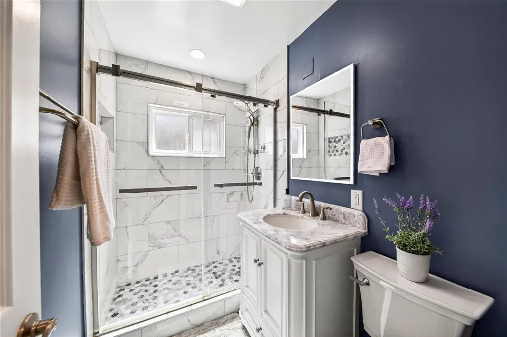 Inside, the home features warm, dark wood-plank laminate flooring, a remodeled fireplace, scraped ceilings, and beautifully updated bathrooms. The kitchen showcases gorgeous quartz countertops, a stylish backsplash, and upgraded cabinetry with soft-close drawers and convenient pull-out shelves. Additional upgrades include all new interior paint and carpet, new interior doors, blown-in insulation for enhanced energy efficiency, a metal roof, new ceiling fans, a replaced electrical panel, and solar panels designed to offset the hot tub and EV charging. A 240-volt EV outlet is already installed. Major systems and appliances have been replaced as well, including all drain pipes under the house, the dishwasher, stove, microwave, water heater, and furnace.