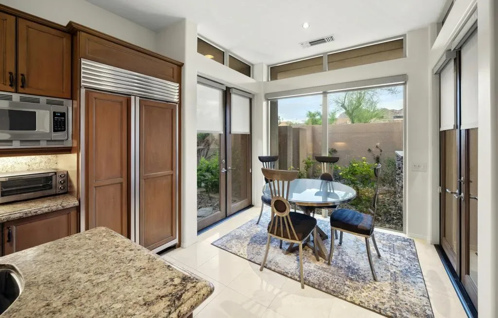 Exceptional desert retreat offers a rare opportunity to own a 4 bedroom, 4 bath Bungalow within the natural beauty of The Reserve Club. A much-desired floor plan has walls of windows to capture panoramic views of the Santa Rosa mountains painted with morning sun and brilliant sunsets. This remarkable corner location overlooks a soothing waterway, bridge and private stream, alongside outdoor entertaining patios for dining and relaxing. The gourmet kitchen has French doors opening to the entry courtyard and to the back patio for a gentle cross breeze. The spacious living areas are complimented throughout by quality interior design and furnishings. The Reserve Club offers world class amenities including a Tom Weiskopf-Jay Morrish designed championship golf course, three Trophy Holes and a double-ended practice range. The Club Village includes Clubhouse; Lakehouse for casual dining; Fitness Center with exercise rooms, extensive cardio equipment, Jr. Olympic size pool, Tennis and Pickleball; and Golf Shop.
