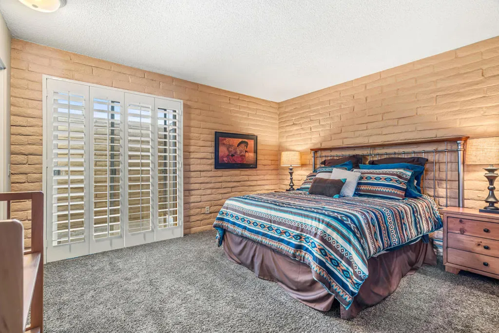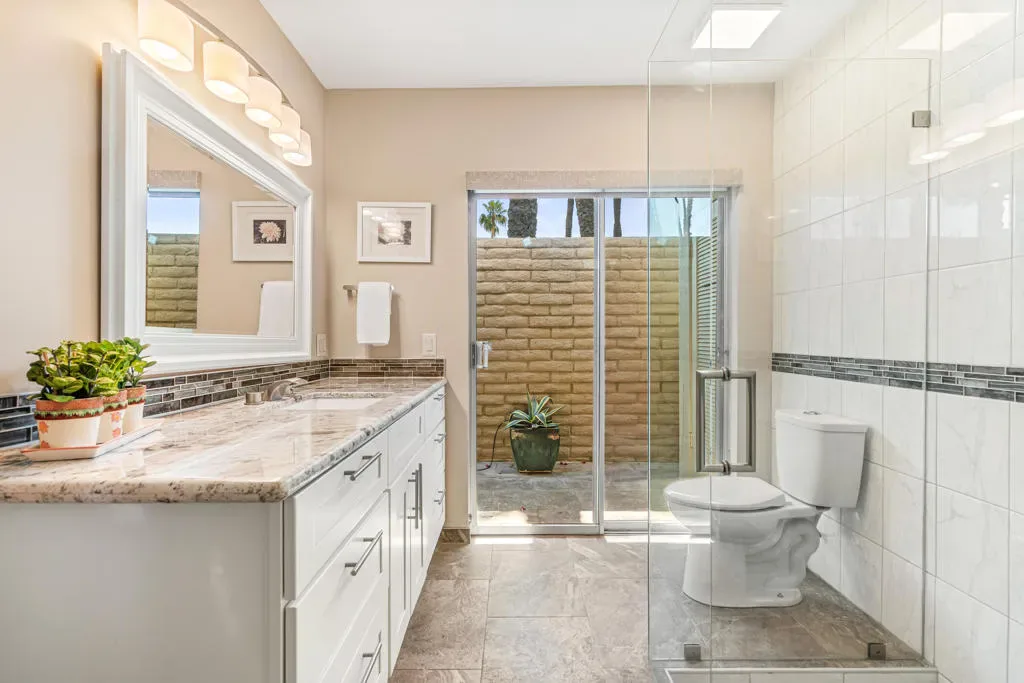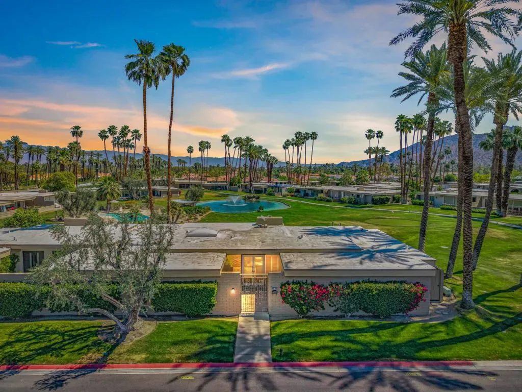 QUINTESSENTIAL MODERN ELEGANCE and UPSCALE DESERT LIVING! Perfectly appointed, this 4 bedroom, 3 bathroom home is located in the highly coveted gated community of Casa Dorado in Indian Wells. Embrace this rare offering in a prime location capturing sweeping greenbelts, water features, pool, golf AND mountain views, front and back. Truly exceeding expectations! Showcasing the signature architectural lines of mid century modern design in Casa Dorado, this home features floor to ceiling windows, an open floor plan and abundant natural light, seamlessly connecting indoor living to the serene Desert landscape. Porcelain tile flows from the oversized front courtyard into the main living areas and onto the extended back patio inviting the indoor/outdoor lifestyle. The Chef’s kitchen is a culinary dream, boasting new appliances, gas stove with double sided hood, 2 ovens, microwave, built in wine rack , wine cooler, complemented by custom cabinetry and soft up-lighting! A nearby wet bar offers a great gathering spot, making entertaining a breeze! The primary suite is a wonderful retreat providing soft plush carpet, customized tile shower and and soaking tub, high end plumbing and fixtures, a walk in closet with built in dresser and pocket door for privacy. 3 additional bedrooms are generously sized and are adjacent to 2 additional modernized full bathrooms providing privacy and comfort for family and friends. Additional features include reflective window film for energy efficiency, a newer HVAC system, and an upgraded electrical panel fully equipped to support solar power. abundant storage inside and out. A huge bonus is the attached golf cart garage and the detached two car garage just steps away! Enjoy a VIBRANT, yet PEACEFUL lifestyle in Casa Dorado with lush greenbelts, mature palms, scenic walking paths, multiple pools and spas, tennis, pickleball and a par 3, four hole, pitch ‘n putt golf course. Love life in Indian Wells with discounts to the Resort Course at the Hyatt, preferred access to The Tennis Tournament, discounts for dining, local events, spas and more! RICH, WARM, TIMELESSLY ELEGANT and ABUNDANT VIEWS FRONT and BACK! Who says you can’t have it ALL?
