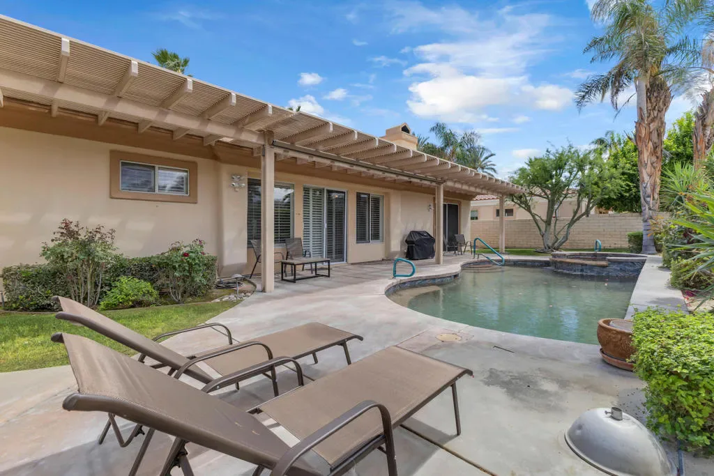 Stunning Indian Wells retreat – Beautifully refreshed for the season, this stunning home features brand-new flooring and freshly curated furnishings throughout, making it a true turnkey retreat from the moment you arrive. Nestled within the prestigious gated enclave of Colony Cove, this 2,117 sq ft residence offers three spacious bedrooms, two full bathrooms, and an expansive living room anchored by a sleek fireplace – perfect for relaxing evenings in. The gourmet kitchen is appointed with a breakfast bar and stainless steel appliances, while a generous three-car garage provides ample room for guests, golf bags, or your next weekend adventure. The open, flowing layout leads seamlessly to your private outdoor oasis, where a sparkling pool and spa invite you to unwind beneath the endless Coachella Valley sky.Whether you’re here for the tennis, the golf, the hiking, or simply the sunshine, this desert retreat delivers the effortless, luxurious lifestyle you’ve been waiting for. Per rental regulations, a 30-day minimum rental is required. Ask about our summer rates!