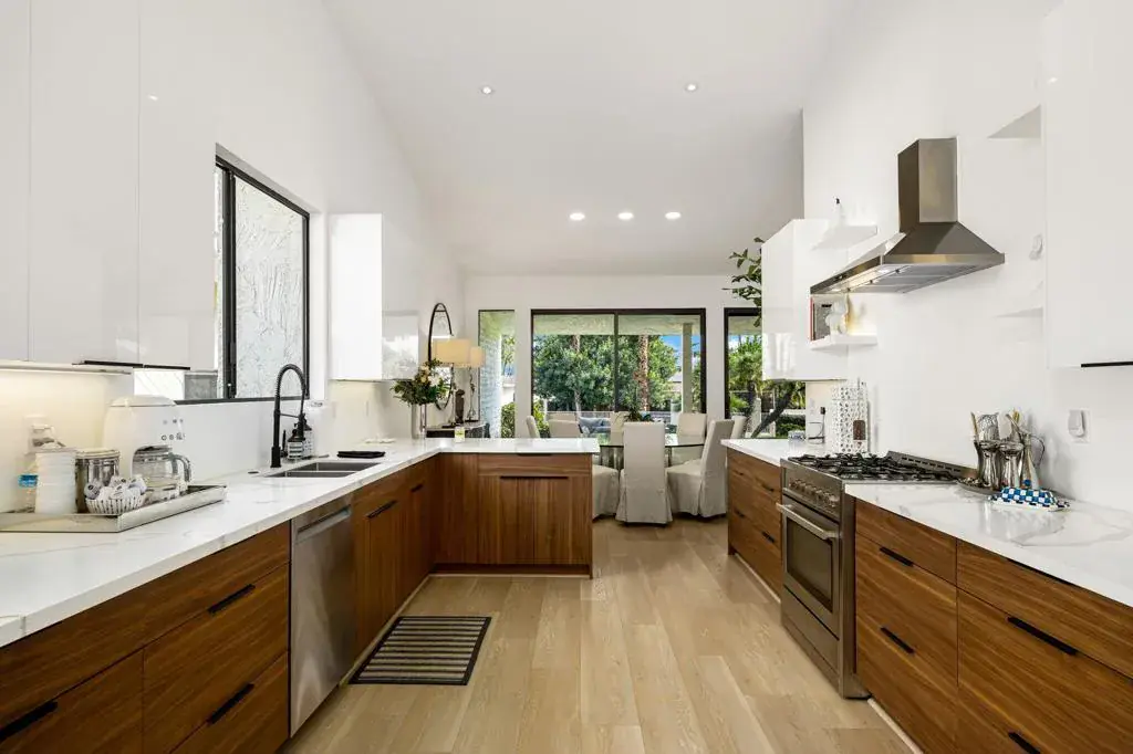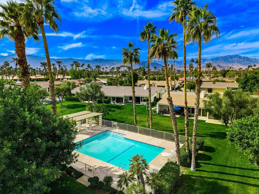 Stylishly Updated 3-Bedroom Condo with Mountain & Pool Views! Experience luxury desert living in this modern 3-bedroom, 3-bathroom condo located on a quiet cul-de-sac in the prestigious Desert Horizons Country Club in Indian Wells, California. Elevated above a lush greenbelt, this home captures stunning mountain and pool views. Step through a new custom front door into a spacious great room with vaulted ceilings, a statement fireplace, and a sunken wet bar with quartz countertops and a wine refrigerator–ideal for entertaining. Updated luxury finishes and contemporary design throughout! The open-concept living and dining areas extend to the outdoor patio, perfect for seamless indoor-outdoor living. The redesigned kitchen features quartz countertops, new cabinetry, bar seating, a breakfast area, and soaring ceilings. The primary suite offers private patio access, dual vanities, and a large walk-in shower. Two guest suites with en-suite bathrooms open to a private enclosed courtyard for added privacy. Attached 2-car garage with abundant storage. HOA dues include Social Membership (mandatory for all homeowners). Desert Horizons CC has been renovated to include a gorgeous Clubhouse with bar & dining, state of the art fitness facility, green renovations on the Ted Robinson Sr designed course, new courts complex and more! Call us for Membership information. Enjoy elevated desert living with all the modern upgrades and views you’ve been searching for! (Note: A few of the Country Club photos are digitally altered/renderings)