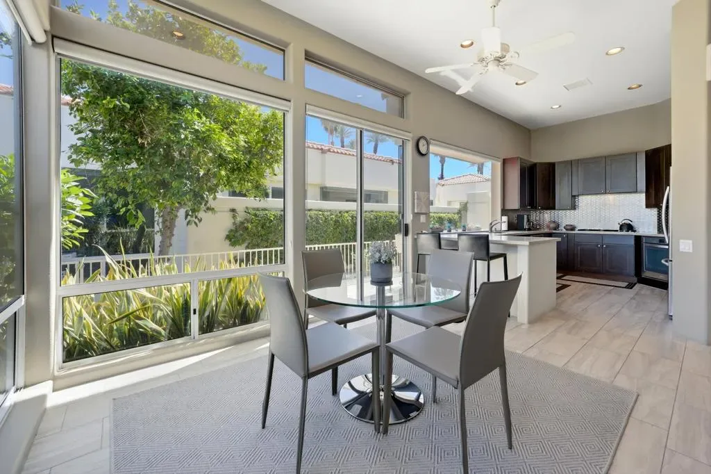 UNBELIEVABLE…Steal this deal! Best Location in Indian Wells! Tastefully Updated & Furnished, Private Pool & Spa home, Guard Gated, Private Golf Club under 900K! Extensive upgrades include beautiful modern offset tile and wood floors, quartz countertops, stainless appliances, sleek double-sided fireplace clad in modern stone veneer, floating natural wood finish media cabinet, custom blinds & more! Great room open floor plan with the adjoining dining room offers ample light with high ceilings, well-placed skylights and expansive windows overlooking the golf course that give an airy indoor/outdoor feel, perfect for entertaining! The home features 3 bedrooms, 3 baths with one bedroom currently being used as a den. Enter the gated & tiled courtyard and you are greeted by sounds of waterfalls spilling into the architecturally designed private pool & spa with South facing mountain views. The Generous back patio is enclosed with a low fence & looks out on the 8th fairway with breathtaking North & West Mountain views. This premier Country Club features an 18-Hole Private Golf Course, newly rebuilt modern club house with indoor and outdoor bars, dining with disappearing walls of glass, A state of the art-5 star 8,000 sq ft Fitness & Wellness Center, Sports Court Pavilion with 11 new pickleball courts, 2 tennis courts, bocce ball courts, catch and release fishing, miniture golf course, water volleyballs and more! Something for the whole family. Largest womens club in the valley! Come visit and see why it’s the talk of the town…the new it place to be!