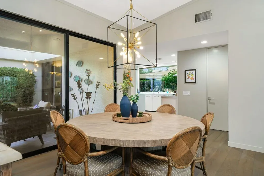 REMODELED. FURNISHED. PANORAMIC MOUNTAIN VIEWS. 32 OWNED SOLAR PANELS.This partially furnished Bayberry Plan showcases panoramic mountain, golf course, and west-facing sunset views, with high-end upgrades already complete.The chef’s kitchen features Bosch, KitchenAid, and Thermador appliances, quartz countertops, and custom cabinetry with extra interior storage drawers. New engineered wood flooring thoughout, upgraded toilets, automatic blinds, and new windows and sliders bring modern comfort and polish throughout the home.The great room opens through custom folding glass doors to the west-facing patio overlooking the 5th green–perfect for enjoying magical desert sunsets. A tiled courtyard with a tranquil fountain and a south-facing side yard with sweeping Eisenhower mountain views create additional outdoor living options.The primary suite offers a spa-inspired bath with custom cabinetry and gorgeous closet, while two guest suites each include private baths.Other standout features include 32 owned solar panels, two high-efficiency Trane heat pumps, a tankless water heater with instant hot, custom built-ins, and a finished garage with epoxy floors, built-in storage, mini-split AC, and golf cart garage.Privately set on a quiet cul-de-sac near the community pool, this home delivers upgraded, move-in-ready Country Club living. At the heart of Desert Horizons, the newly reimagined 40,000 sq. ft. Clubhouse offers elevated dining, vibrant social spaces, and stunning event venues. The 8,000 sq. ft. Fitness & Wellness Center features panoramic views and top-tier equipment, while the brand-new Sports Pavilion offers two tennis courts and eleven premier pickleball courts for every level of play.