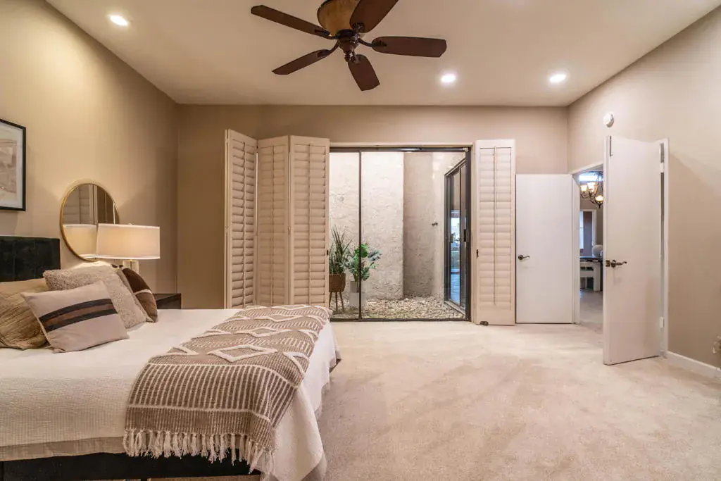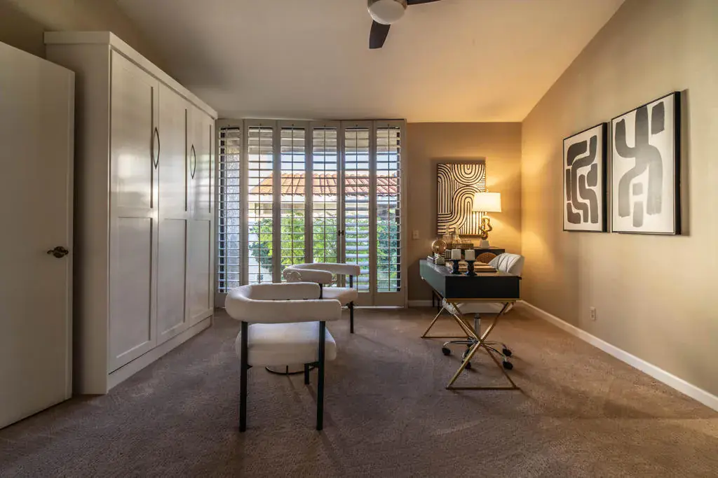 Exceptional new value — live where the pros practice, play, and return year after year. This beautifully appointed 3-bedroom, 3-bath residence spans 2,489 sq ft of thoughtfully designed living space, seamlessly blending comfort, elegance, and effortless indoor-outdoor flow.Soaring ceilings and an open floor plan welcome you into expansive living and dining areas, anchored by a cozy fireplace and a sunken bar with wine cooler–perfect for entertaining. Walls of glass frame sweeping mountain views and open to a covered patio, creating an ideal setting for morning coffee, relaxed afternoons, or sunset dinners.The kitchen is both stylish and functional, featuring granite countertops, stainless steel appliances, abundant cabinetry, and an excellent layout for hosting family and friends. At the heart of the home, a light-filled central atrium creates a tranquil indoor oasis, bathing the interiors in natural sunlight throughout the day.Each bedroom offers a private retreat with its own en-suite bath. One guest suite features a Murphy bed for flexible living, while another enjoys a separate entrance with private patio access–ideal for visiting guests or extended stays. The expansive primary suite is a true sanctuary, complete with a walk-in closet and a spa-inspired bath designed for relaxation.Step outside to lush greenbelts, sparkling community pools, or take a short stroll to the tennis courts just steps from your door. Dorado Villas is a gated, resort-style enclave offering nine pools and spas, ten tennis courts, two pickleball courts, and beautifully manicured grounds set against breathtaking mountain backdrops.As an Indian Wells resident, enjoy exclusive city benefits including discounted golf at the Indian Wells Golf Resort, preferred access to the Indian Wells Tennis Club, special opportunities during the BNP Paribas Open, and reduced rates at luxury hotels, spas, and fine dining.This is more than a home–it’s an elevated desert lifestyle waiting to be embraced.